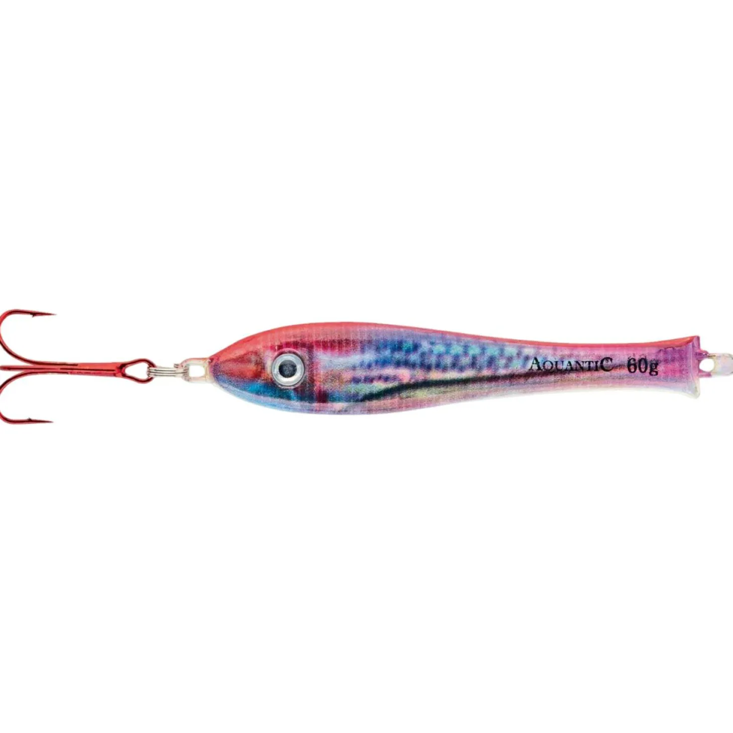Leicht zerfetztes Erscheinungsbild, für den Anschein angeschlagener Beute. Mit schmaler Form, scharfen, roten Meeresdrillingen und in UV-aktiven Farben. Inhalt: 1 Stück.