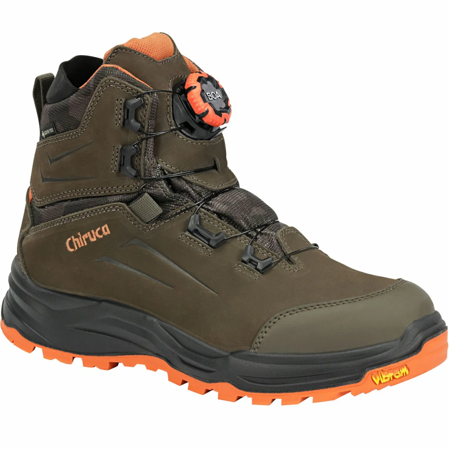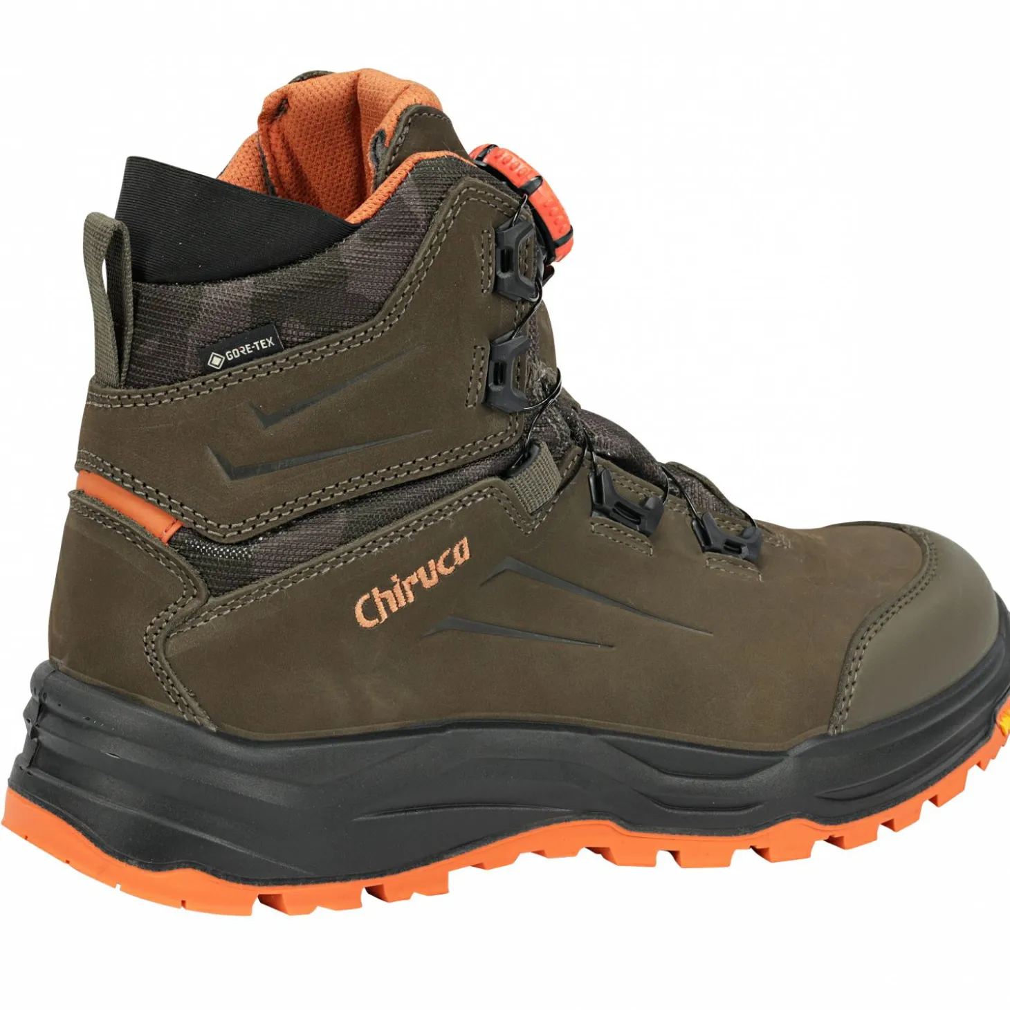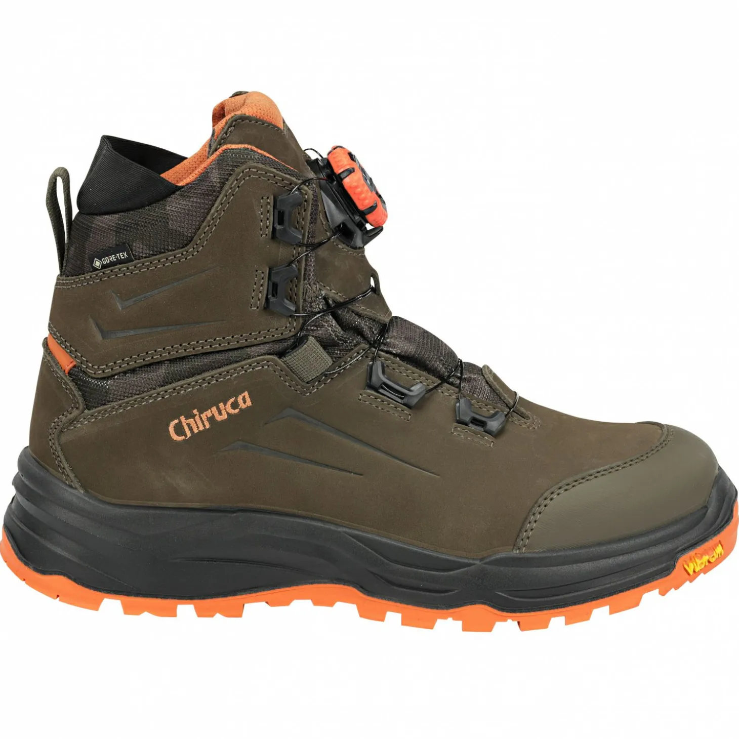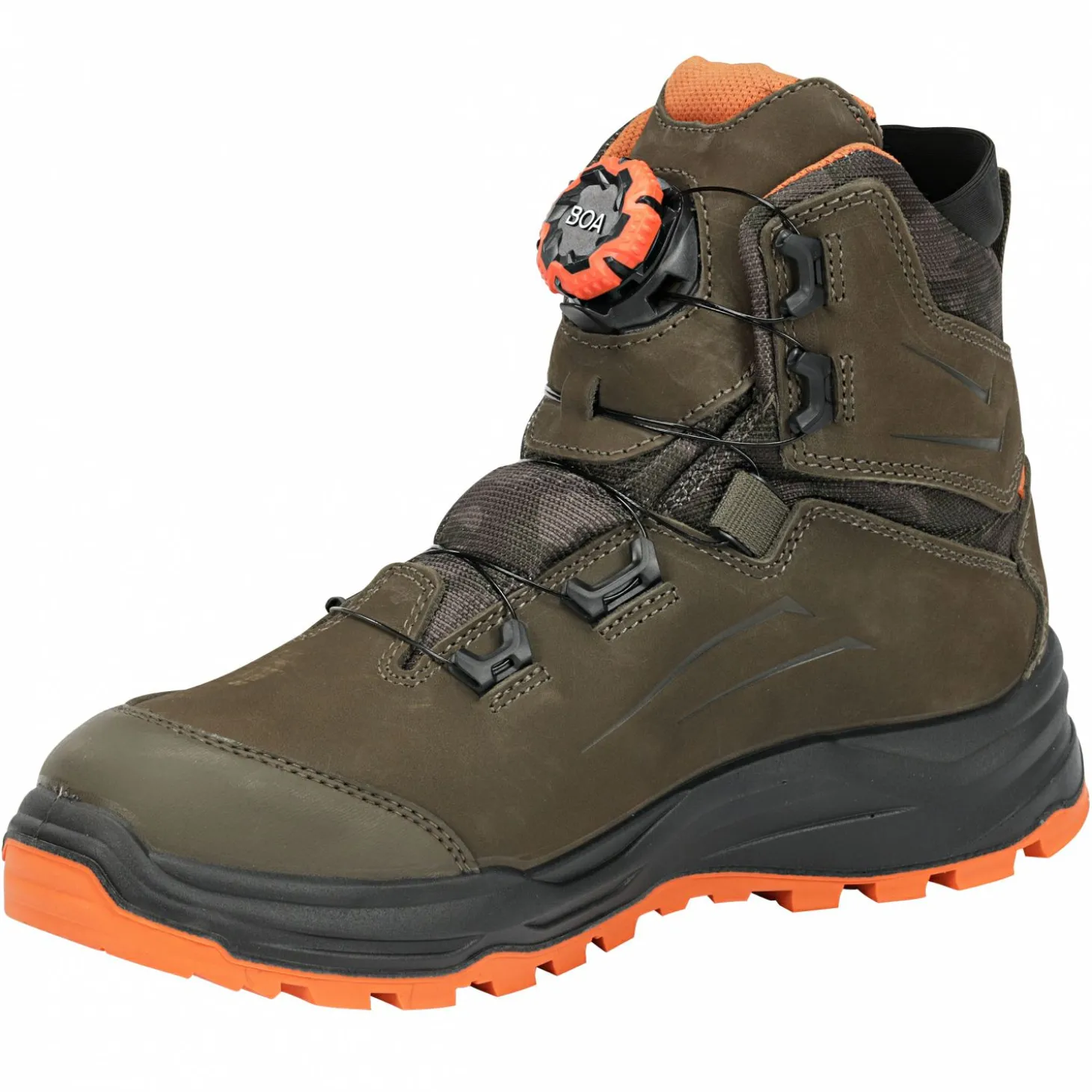 Aus wasserabweisendem Nubukleder und Cordura®-Nylon. Mit BOA® Fit System, Gore-Tex Performance Comfort-Futter, PU-Zwischensohle, Vibram® iron His Vis-Außensohle. Farbe: Oliv.