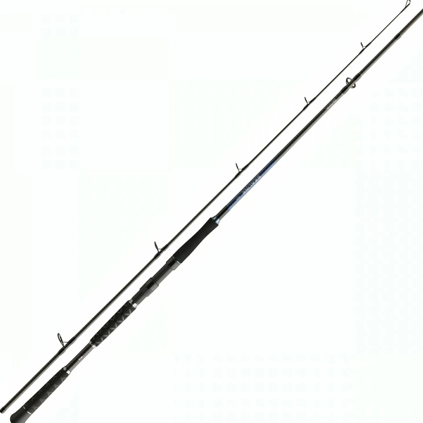 – Mit einem HMC+ Kohlefaserblank mit X-Wicklung geteiltem EVA-Griff und Seaguide Ringe