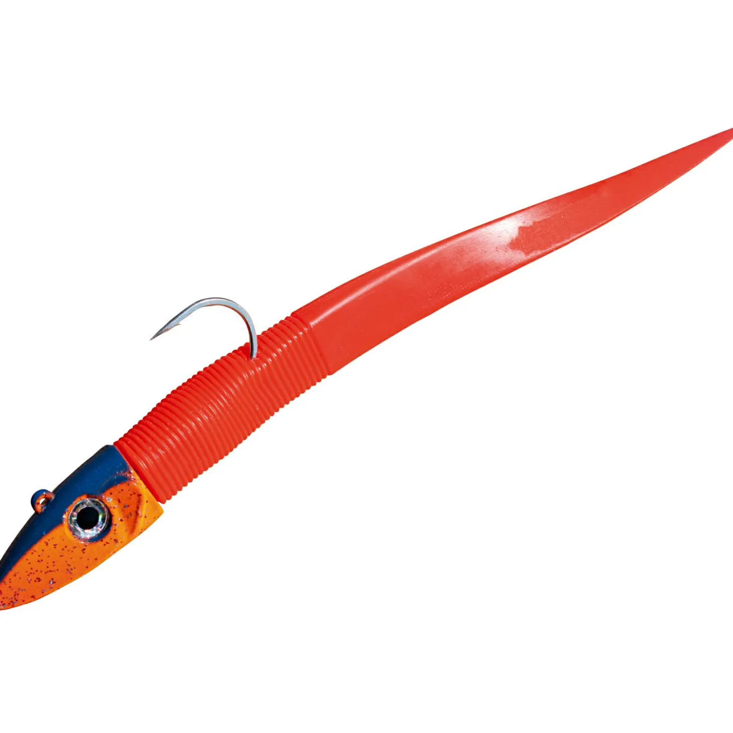 Die perfekte Imitation eines Sandaals. Fängt vor allem Heilbutt, große Pollacks und Dorsche. Länge: 20 cm.