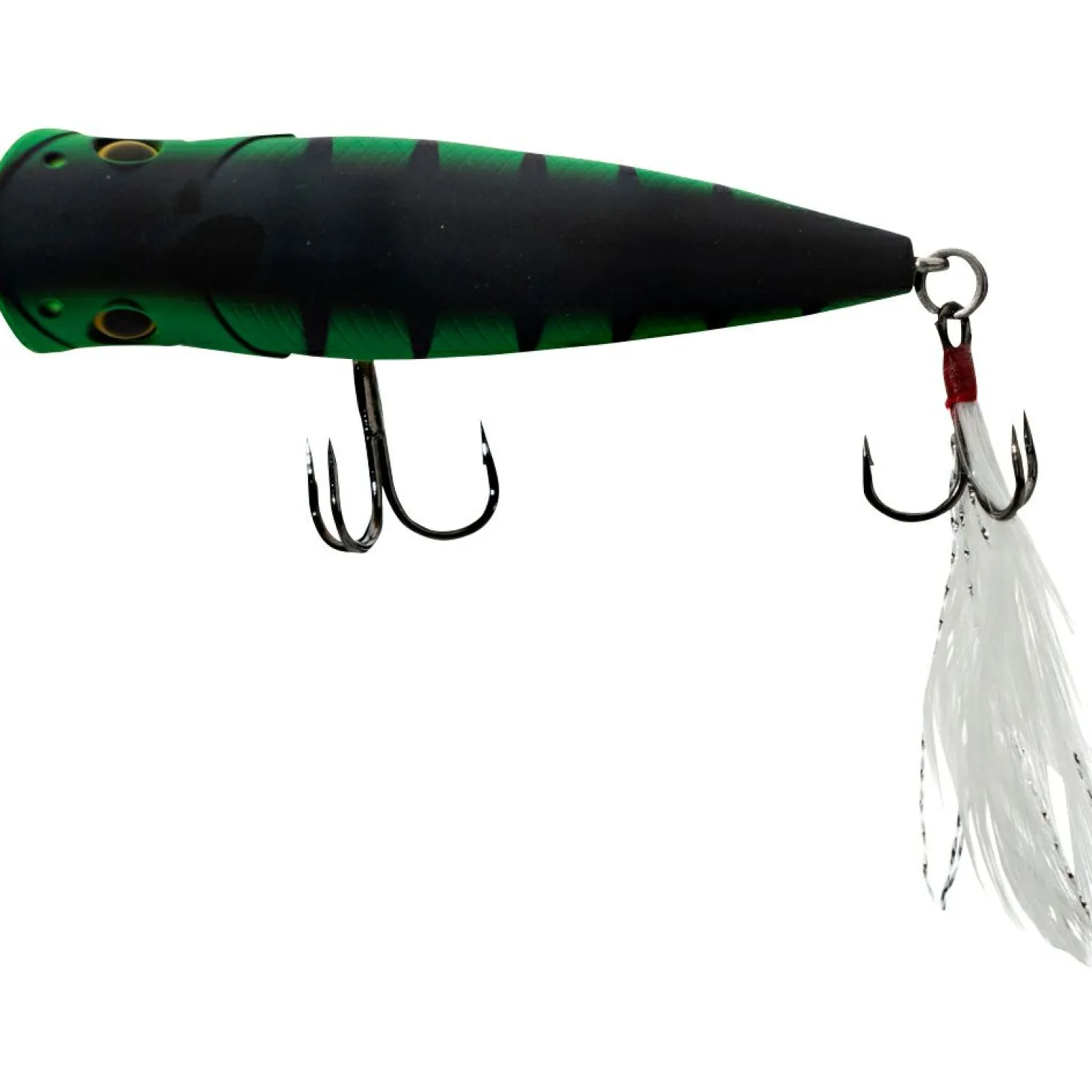 Die Black Nickel Drillinge und schwarzen Sprengringe verhindern unerwünschte Lichtreflexionen und lassen den Köder dezent wirken. Auf extra Rasseln wurde bewusst verzichtet, sodass er als Low Sound Hardbait mit einem leisen Klackern der Balancekugeln arbeitet. Der hintere Drilling ist zudem mit Federn und UV-Akzenten ausgestattet, was dem Köder zusätzlichen Reiz und Sichtbarkeit unter Wasser verleiht.
