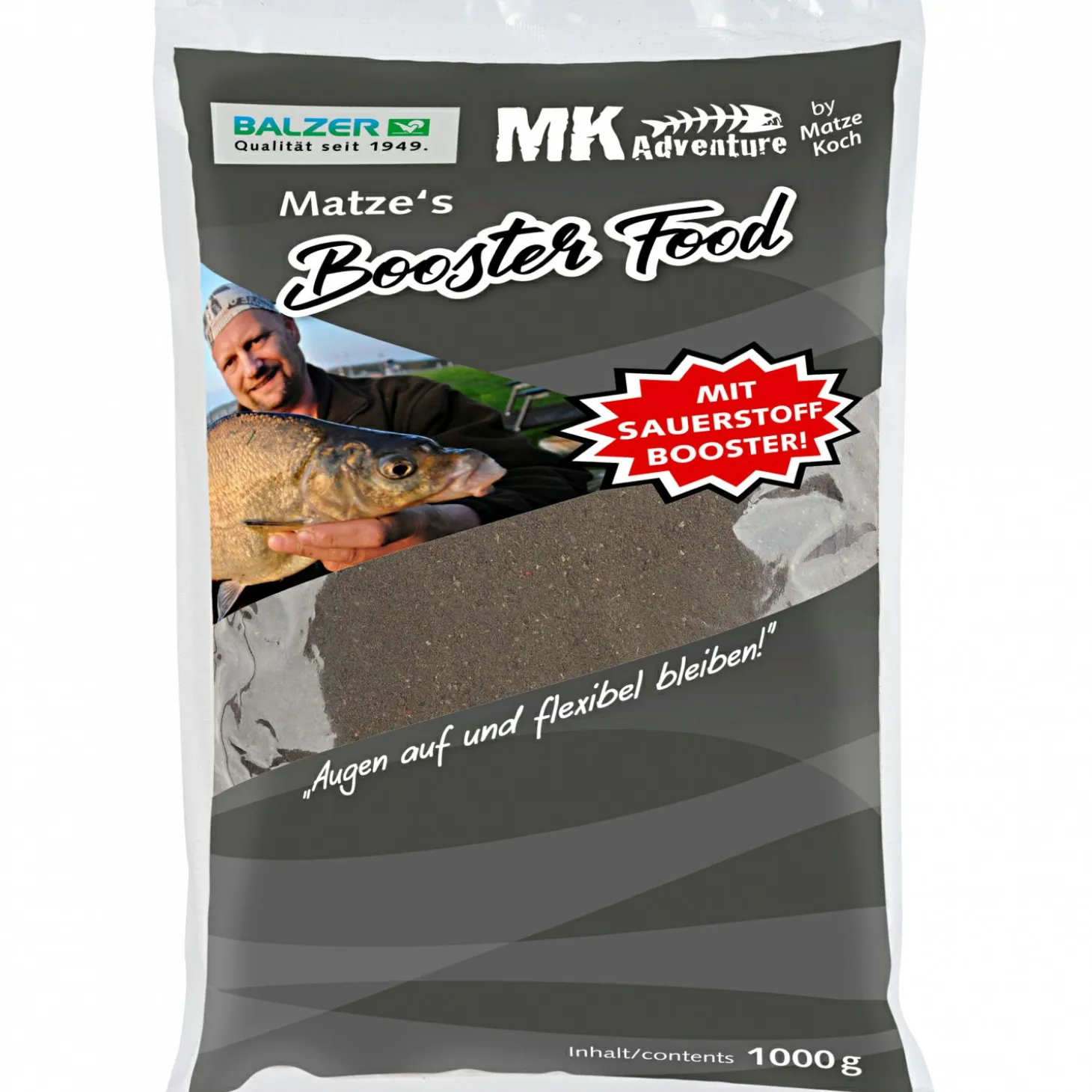 Die Mischung muss den Gegebenheiten angepasst werden. Fischen sie in einem flachen und krautigen Gewässer im Sommer, darf das Futter so trocken bleiben, dass es zerfällt und große Wolken bildet. Die Konsistenz sollte nur eine Spur fester sein, als beim Feedern. Dort mischt man so, dass man einen gekneteten Ballen wieder sauber zerreiben kann. Durch reinen Sauerstoff in Pulverform werden die Inhaltstoffe effektiver in das Wasser übertragen und entfalten eine unvergleichliche Lockwirkung! Fischen sie an einem großen Fluss, wo das Futter von der Strömung zu schnell verteilt wird, muss der Ballen sehr viel fester ausfallen, und sich zu einer massiven Kugel kneten lassen. Hier ist es wichtig, dem Futter Zeit zum „sumpfen“ zu geben, wie es beim Gipsmischen in der Handwerkerbranche heißt. Erst nach einigen Minuten Wartezeit erhält man den Idealzustand. Inhalt: 1 kg.