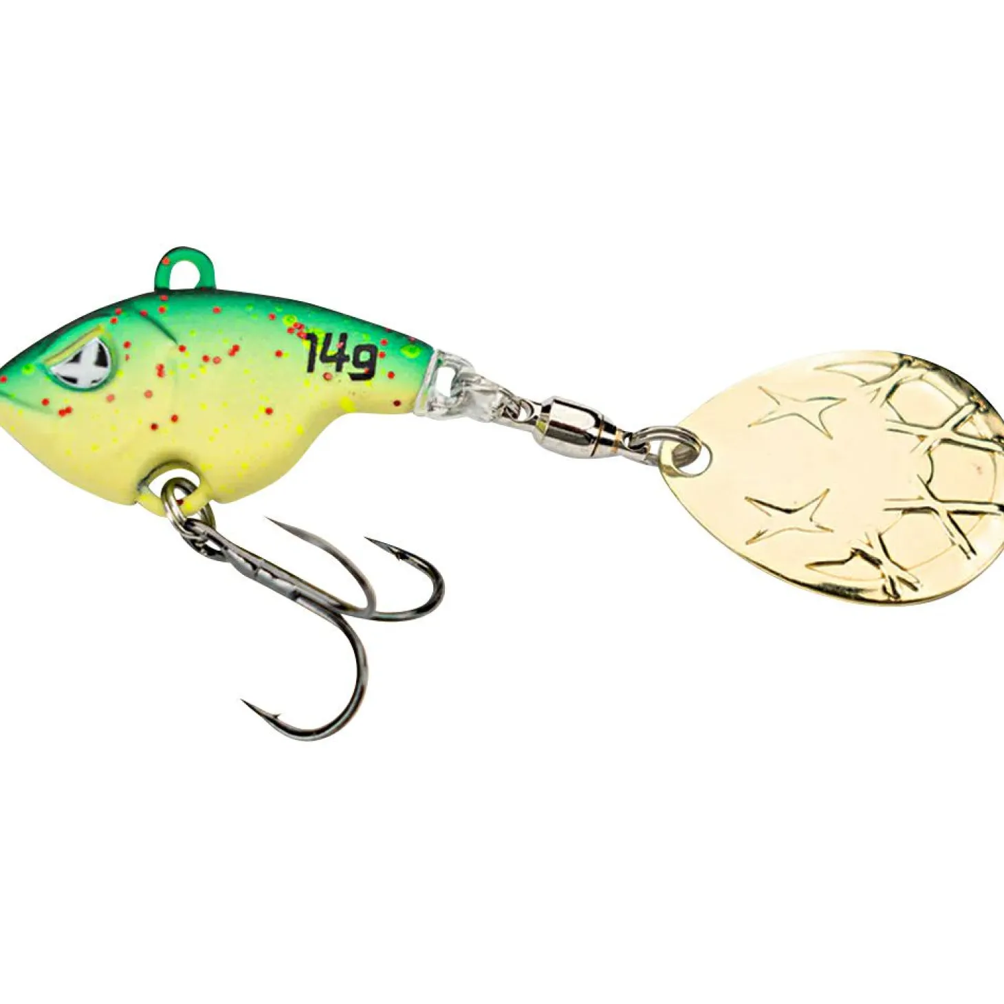 Das Spinnerblatt wurde mit besonderem Augenmerk auf Details entwickelt und sorgt mit starken Wasserverwirbelungen für intensive Reize. Es rotiert bereits bei langsamster Führung und erzeugt in Absinkphasen kräftige Druckwellen. Die Größe des Spinnerblatts ist jeweils an das Ködergewicht angepasst, was für eine harmonische und ausbalancierte Aktion sorgt. Die Vibrationen des Spinnerblatts übertragen sich auf den Rumpf und erzeugen eine ausgeprägte Wobble-Aktion sowie auffällige Lichtreflexe.