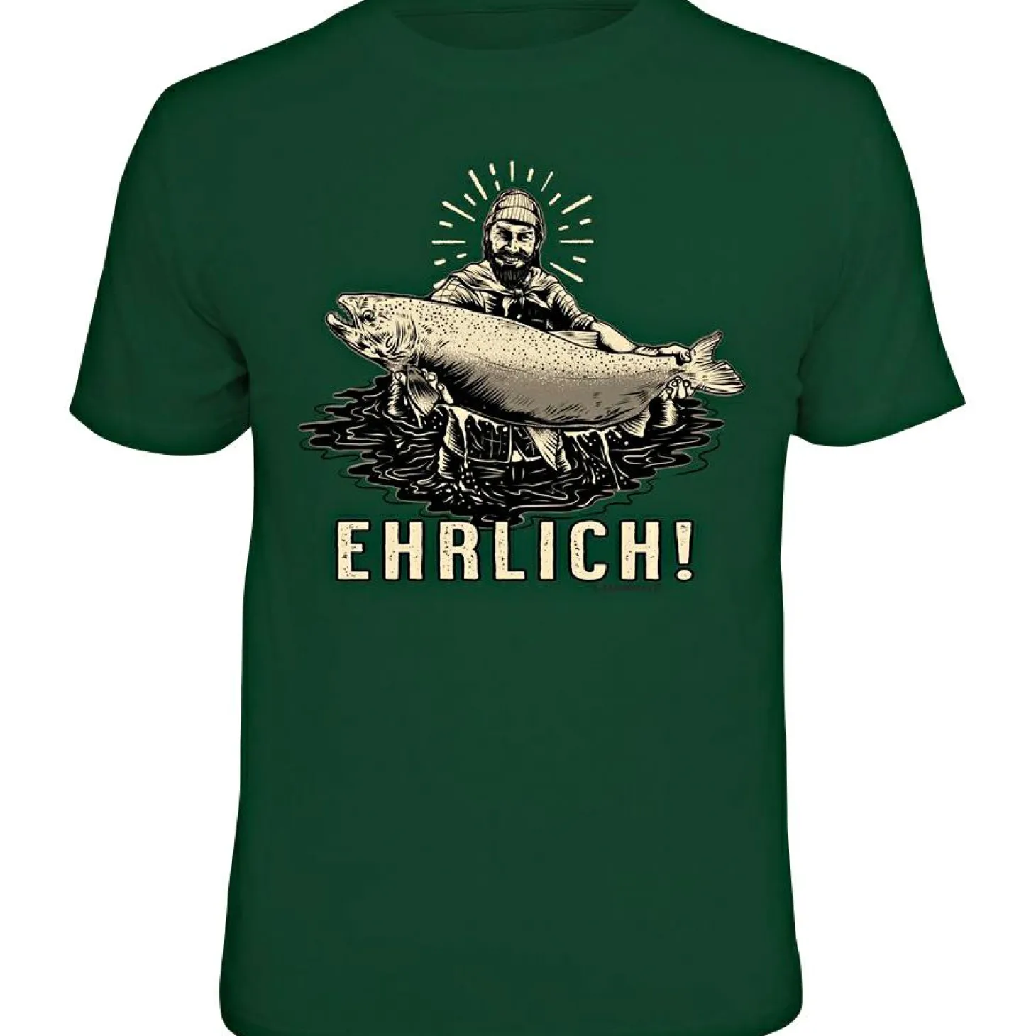 Bequemes, gerade geschnittenes Kurzarm-Shirt mit hohem Rundhalsausschnitt. Ideal für den Ausflug ans Gewässer, aber auch für den Alltag geeignet. Der große Schriftzug vorne verdeutlichen stark Ihre Liebe zum Hobby: „Ehrlich“. Das Material ist angenehm zu tragen. Farbe: grün.