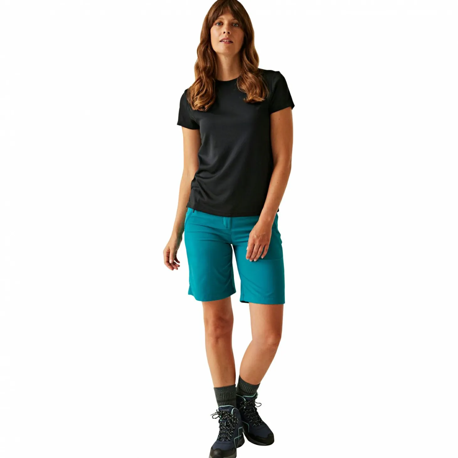 Die Regatta Xert Stretch Bermuda Light Shorts für Damen sind eine ideale Wahl für Outdoor-Aktivitäten bei warmem Wetter. Das dehnbare Isoflex Active-Stretch-Gewebe sorgt für hohe Bewegungsfreiheit und Widerstandsfähigkeit gegenüber Abnutzung – perfekt für sportliche Aktivitäten und aktive Tage in der Natur.