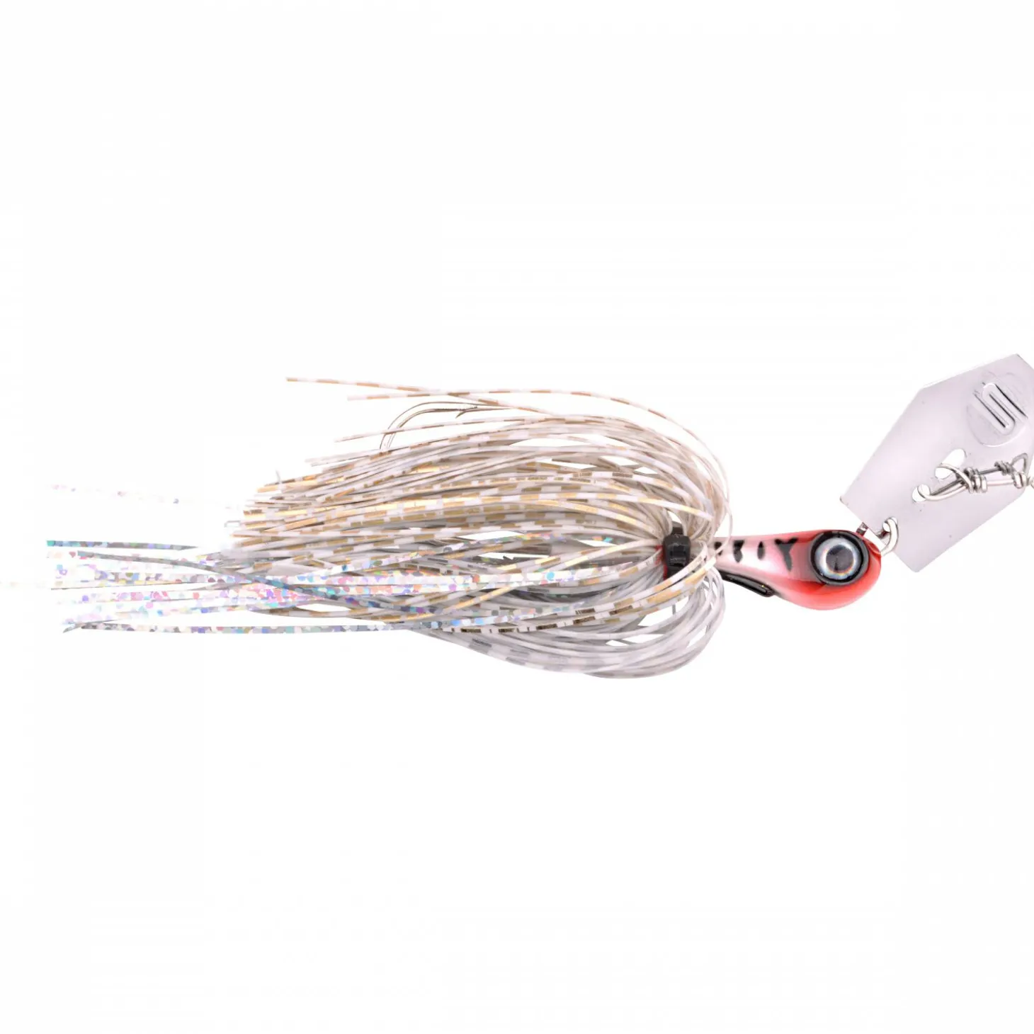 Ein voluminöser, sehr beweglicher Skirt in Kombination mit glitzernden Lametta-Fransen erzeugt zusätzliches Volumen, Pulsation und Lichtreflexe. Der Köder lässt sich optional mit einem Softbait-Trailer kombinieren, um Silhouette und Aktion individuell anzupassen.