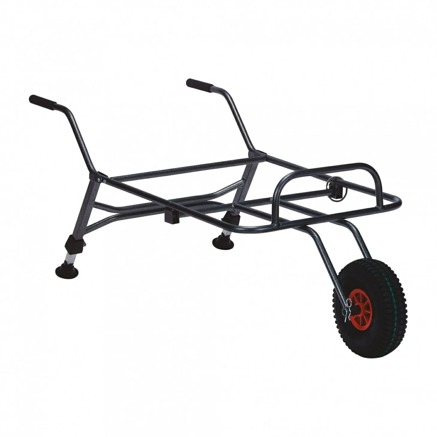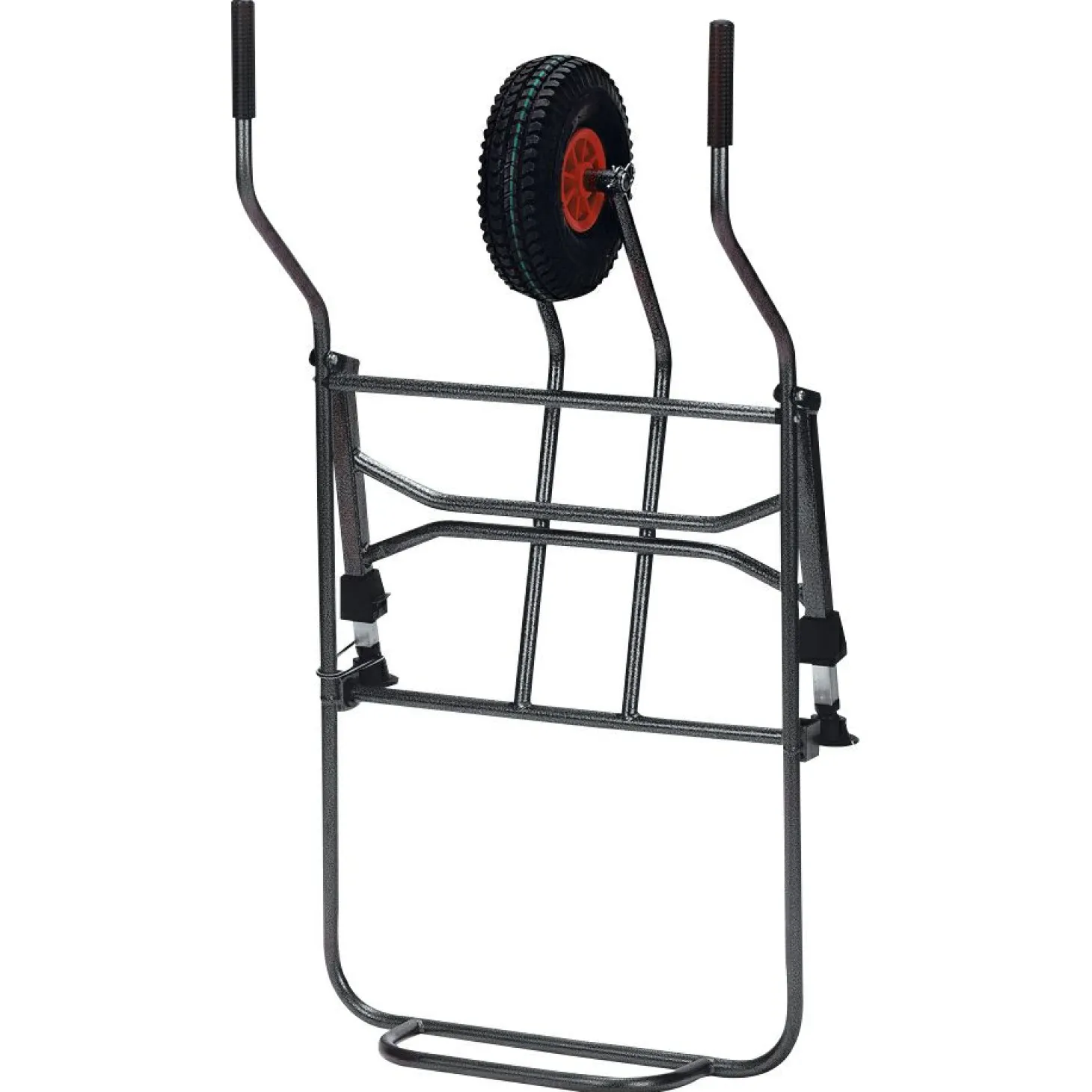 Dieser Wagen wurde für schwere Lasten entwickelt. Mit Ventil-Luftrad (Ø: 26 cm). Die gesamte Auflagefläche beträgt 80 x 60 cm. Die vorderen Stützbeine können von 32 auf 50 cm verstellt werden. Transportmaße zusammengelegt ca. 110 x 60 x 26 cm.