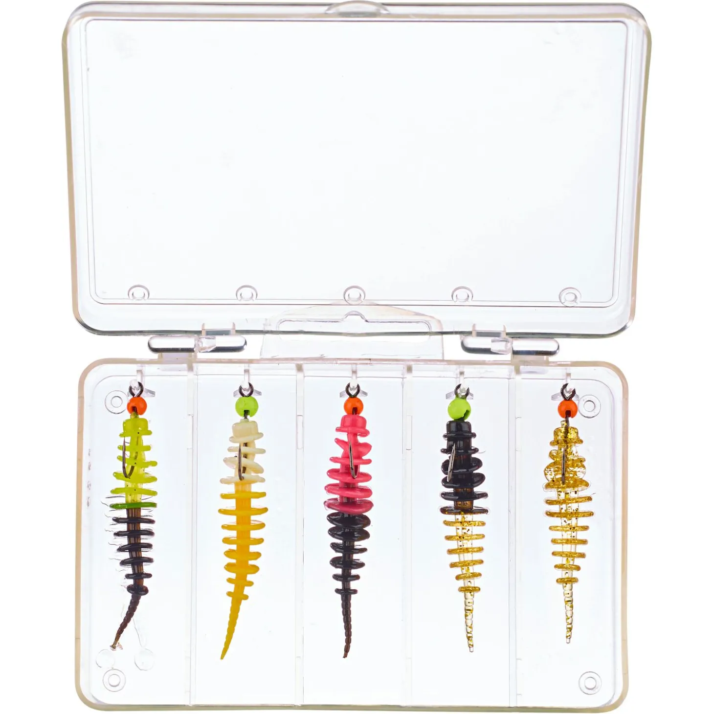 Inhalt: 5 Trout Collectoren in 5 cm 5 Haken, Größe 8, mit Tungstenköpfen: 3 x 0,45 g und 2 x 0,73 g.
