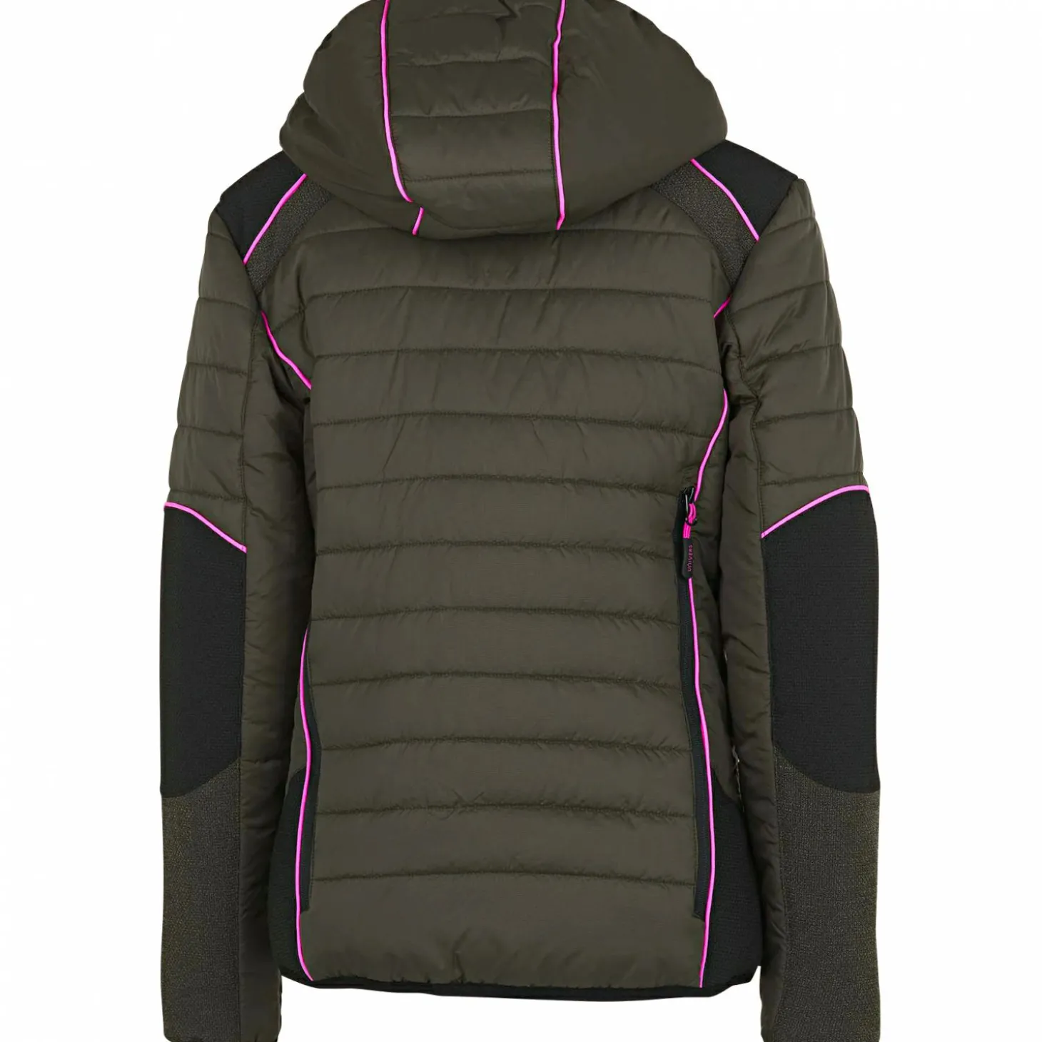 Damen Steppjacke mit Kontrasten aus RK-TEX-Gewebe für mehr Schutz während der Jagd. Mit zwei seitlichen Reißverschlusstaschen und einer Brusttasche für viele Jaduntensilien. Die Brusttasche ist mit einer Antennen-Öffnung versehen und so positioniert, dass sie auch mit umgeschnalltem Rucksack gut erreichbar bleiben. Zusätzlich hat Sie noch zwei Reißverschlusstaschen auf dem Rücken und eine Innentasche mit Klett. Die Kapuze der Jacke ist verstellbar, abnehmbar und hat einen kleinen Schirm, um Regen vom Gesicht abzuhalten. Bei der Konstruktion der Kapuze wurde darauf geachtet, dass sie das Sichtfeld auf der Jagd so wenig wie möglich einschränkt. Farbe: oliv mit Kontrasten in pink.