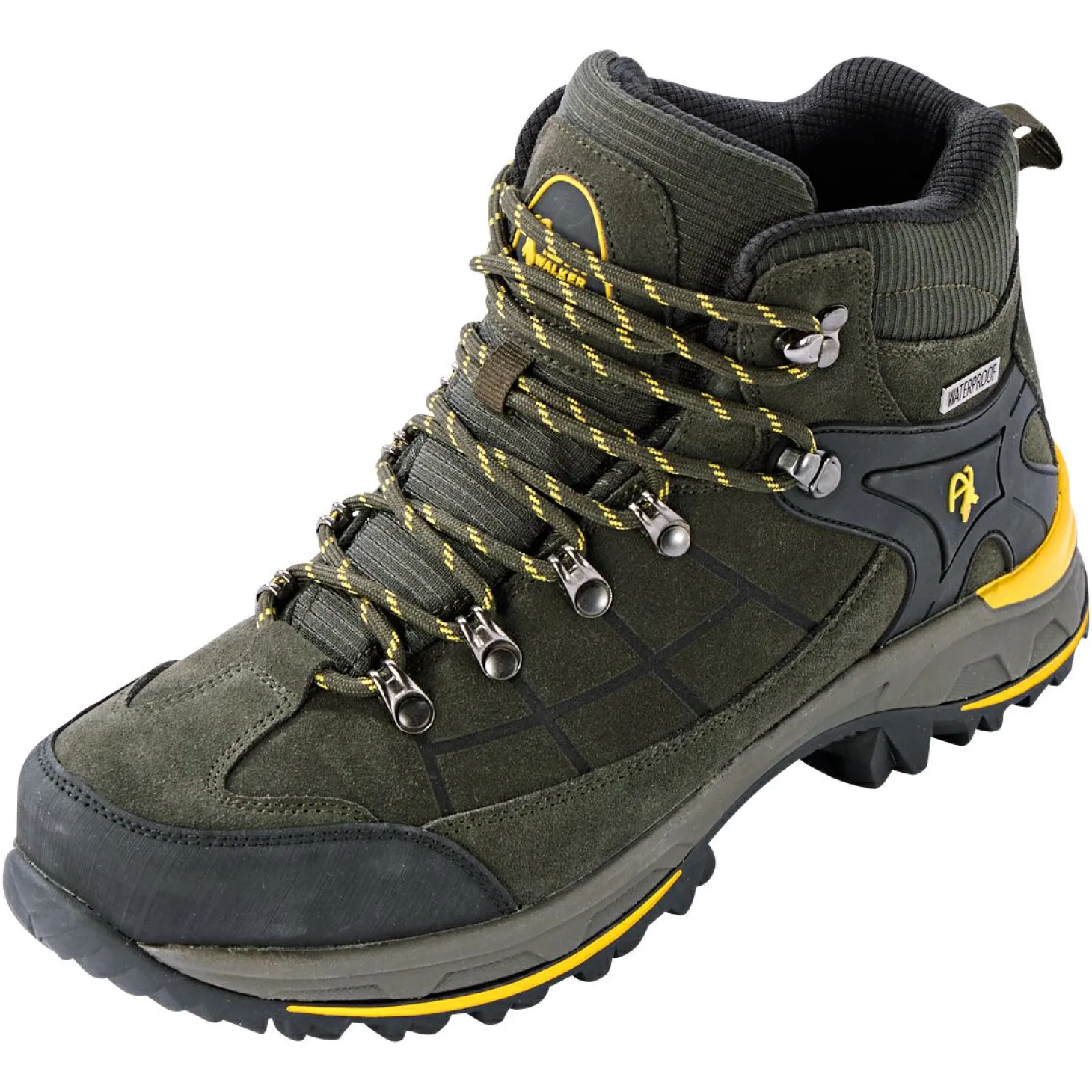Der Outdoorschuh Alejo ATX bietet mit seiner halbhohen Form maximalen Knöchelschutz, was besonders bei langen Wanderungen in unwegsamem Gelände von Vorteil ist. In Kombination mit der robusten Profilsohle ist er die ideale Wahl für Naturabenteuer, bei denen Stabilität und Komfort gefragt sind. Dank der AlmTex® Membran bleibt der Schuh wasserdicht, während er gleichzeitig atmungsaktiv ist, sodass der Fuß auch bei wechselnden Wetterbedingungen stets trocken und gut belüftet bleibt. Die Schnürung passt sich optimal an den Fuß an und sorgt für einen sicheren Halt, der auch bei anspruchsvollen Strecken sicher ist. Der Schuh ist in einem klassischen Olivton gehalten und setzt durch gelbe Kontraste auffällige Akzente.
