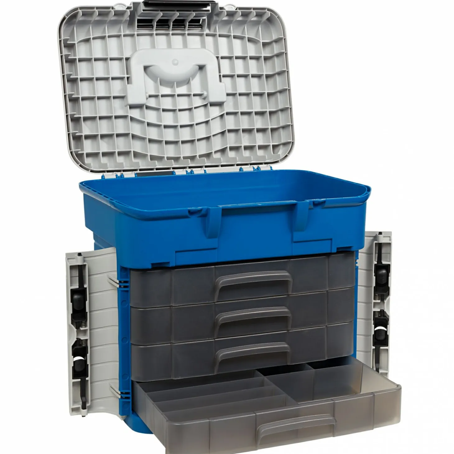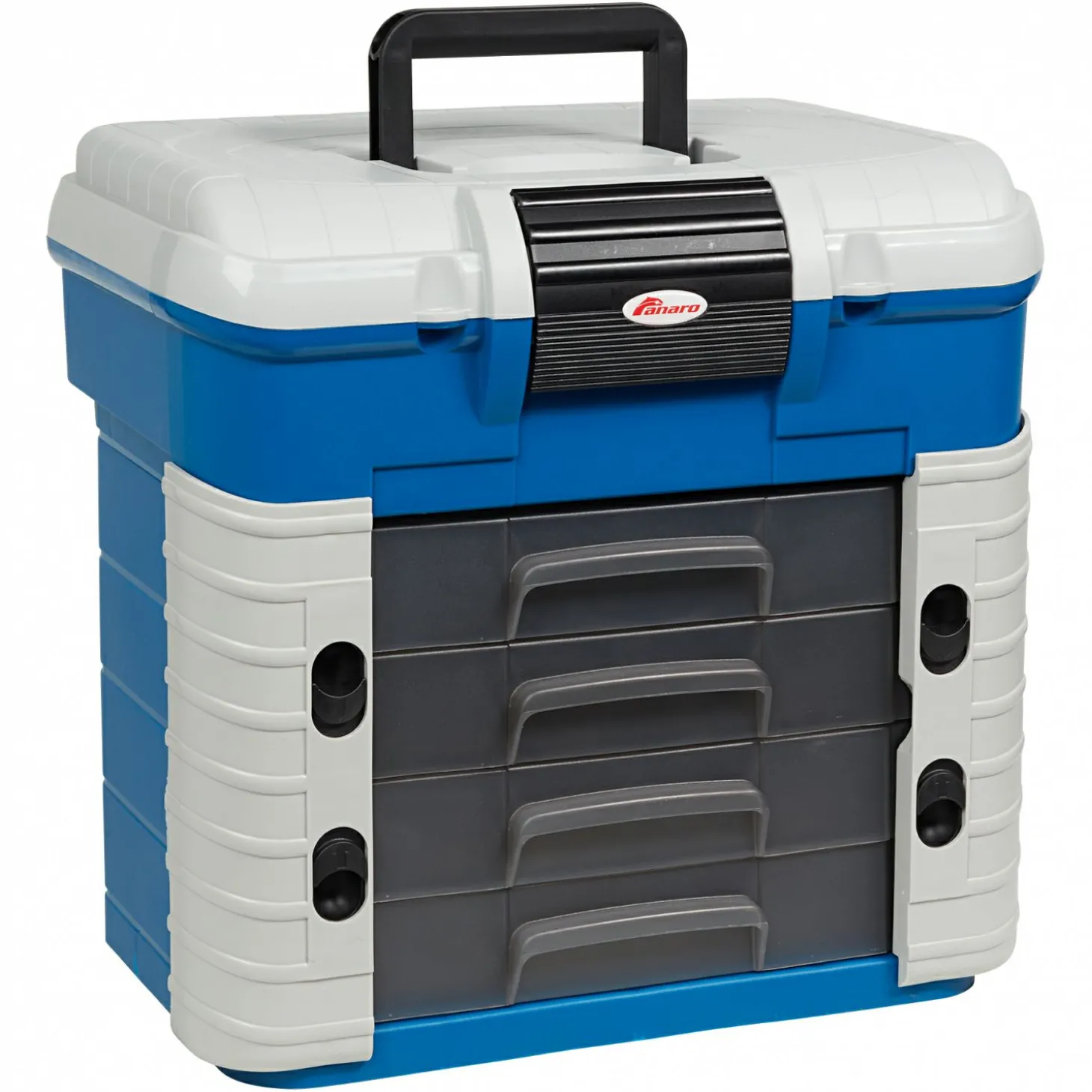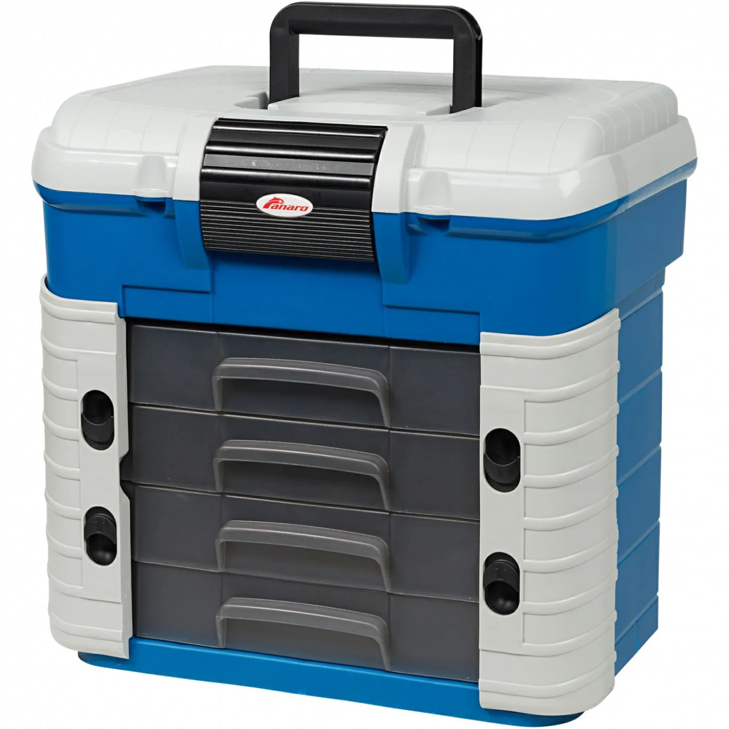 Die Angelbox beinhaltet vier Schubladen mit unterschiedlichen Unterteilungen. Großer Stauraum unter dem Deckel. Widerstandsfähiger ergonomischer Sitz. Maße: 42,0 x 30,3 x 40,0 cm.