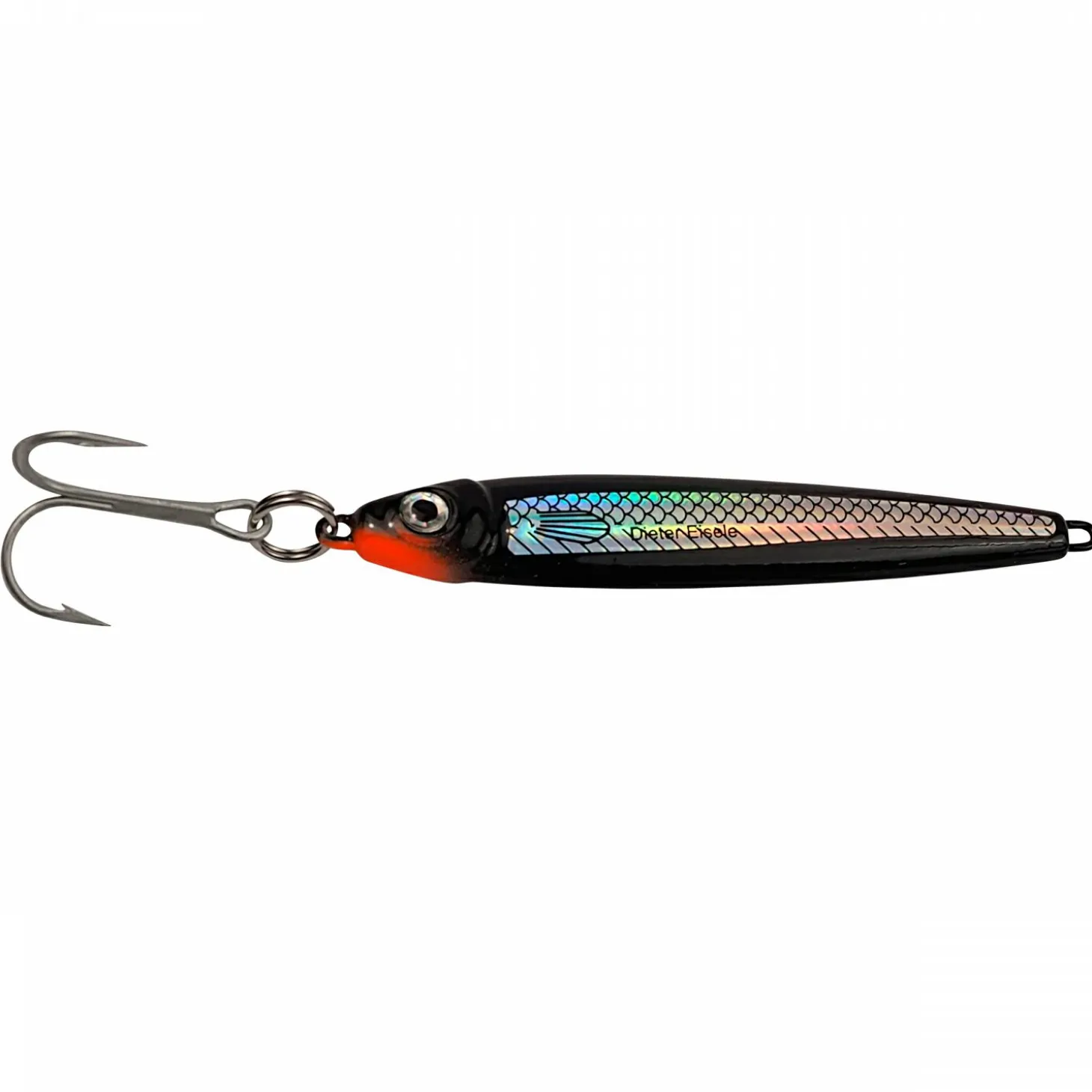 Der Überflieger, ein Alleskönner. Perfekt zum Light-Pilken, Zocken, Belly-Boat-Fischen, sogar für den Barsch ist er unwiderstehlich. Geringste Zupfer lassen ihn exzellent spielen. Mit roten VMC-Drilling (Black Panter = schwarzer Drilling) Stainless Steel Sprengring und 3-D Holo-Augen.