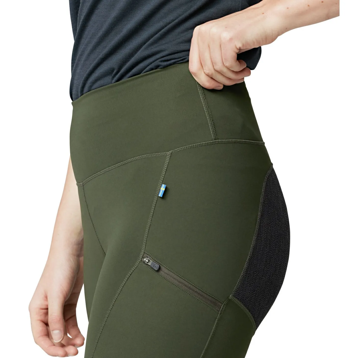Besonders strapazierfähige Trekking-Tights mit Verstärkungen am Gesäß und an den Knien, hergestellt aus langlebigem Doppelstrick-Stretchmaterial aus recyceltem Polyester mit mattem, blickdichtem Finish. Verstärkungsmaterial mit wasserabweisendem Finish für zusätzlichen Schutz in unwegsamem Gelände. Die Abisko Trekking Tights HD W sind gut sitzende technische Funktions-Tights, die sich perfekt für Trekking-Abenteuer eignen, auf denen du volle Bewegungsfreiheit und Strapazierfähigkeit brauchst. Bequem, mit hohem Bund und Tunnelzug innen sowie langem Bein und flachem Saum. Sichere Beintaschen, eine mit Reißverschluss und eine mit überlappendem Verschluss, abgeschrägt für einfachen Zugriff und eine vorteilhafte Passform. Farbe: Deep Forrest.
