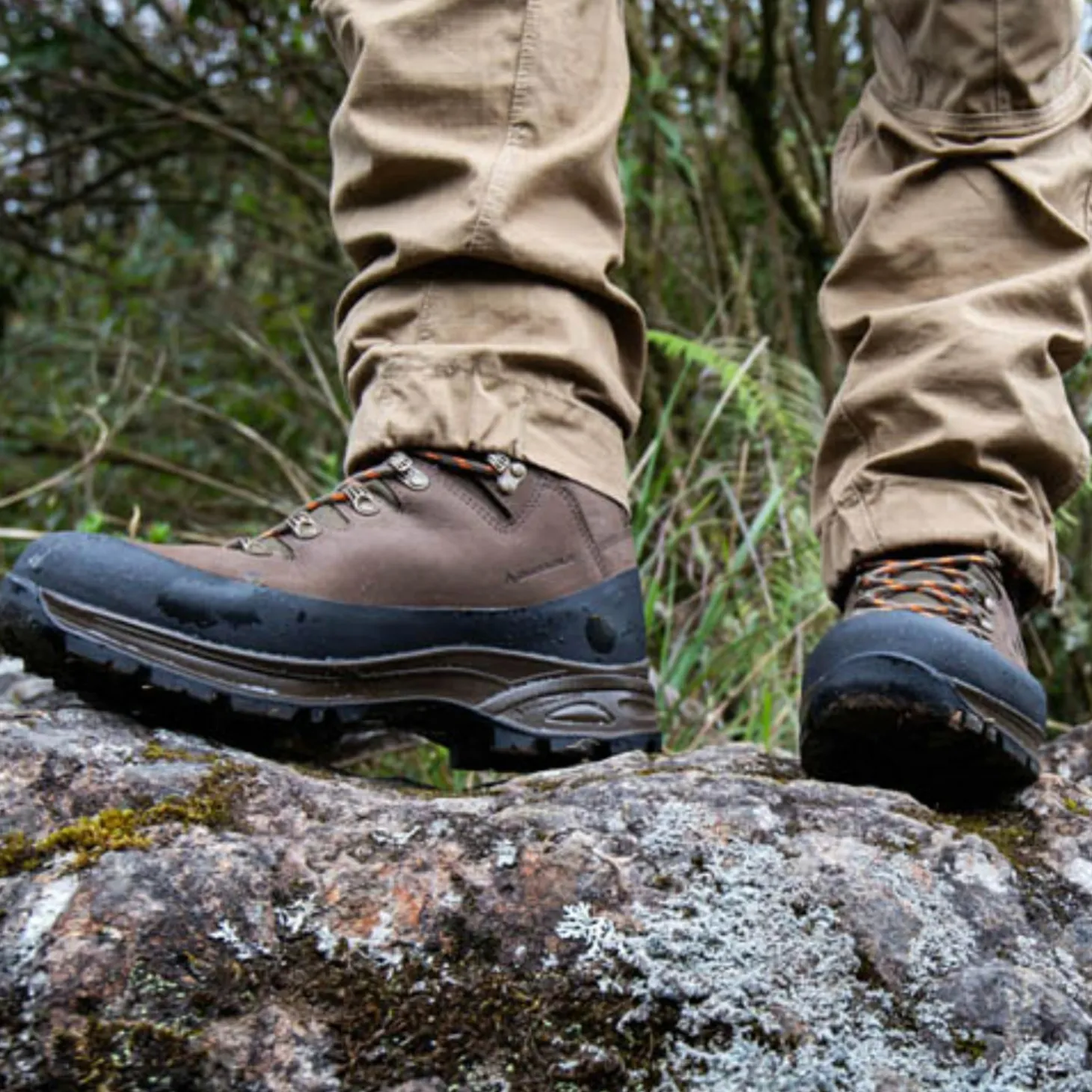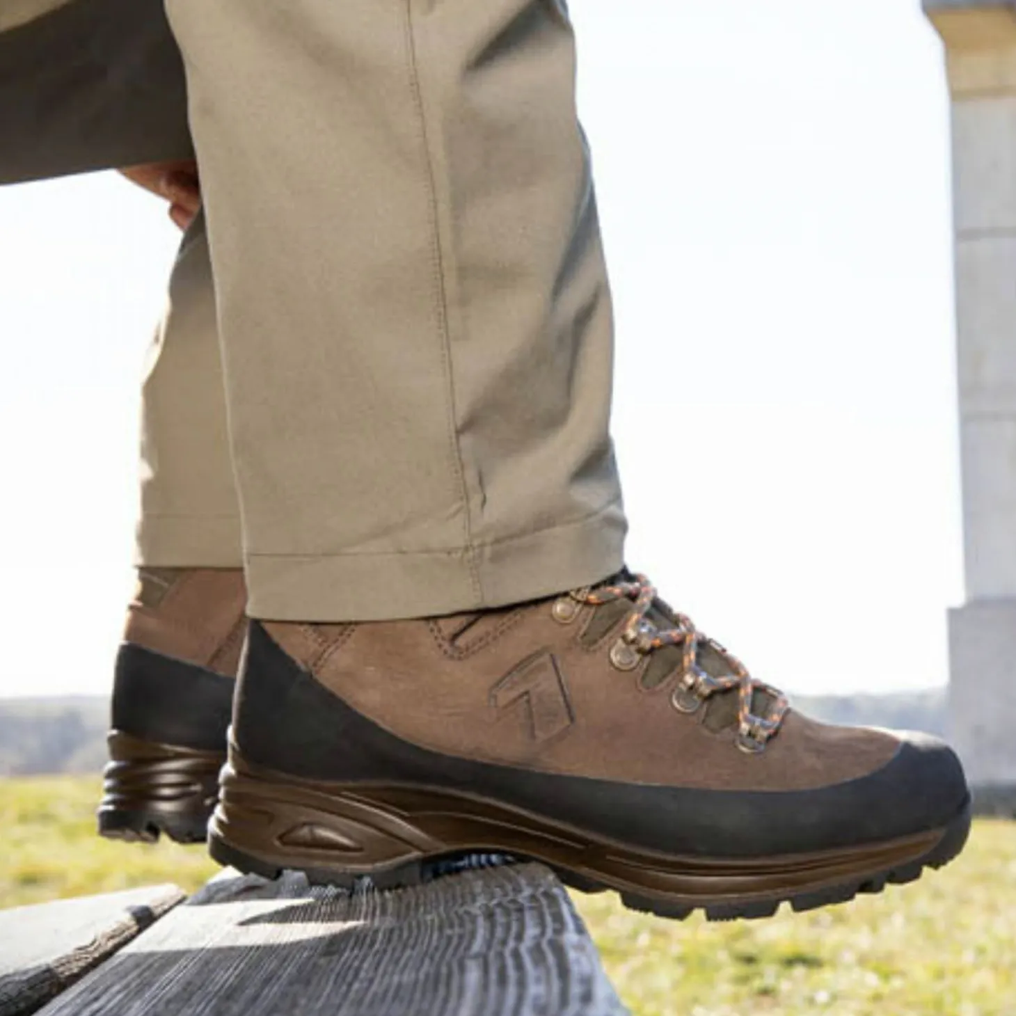 Umlaufender Gummirand, randstabile Sohle, fehlende seitliche Nähte, Klemmhaken und die Möglichkeit zur Schnürsenkelindividualisierung runden die Ausstattung ab und sorgen für Schutz vor Steinen, Stacheln sowie Wärme- und Kälteisolierung. Farbe: braun.