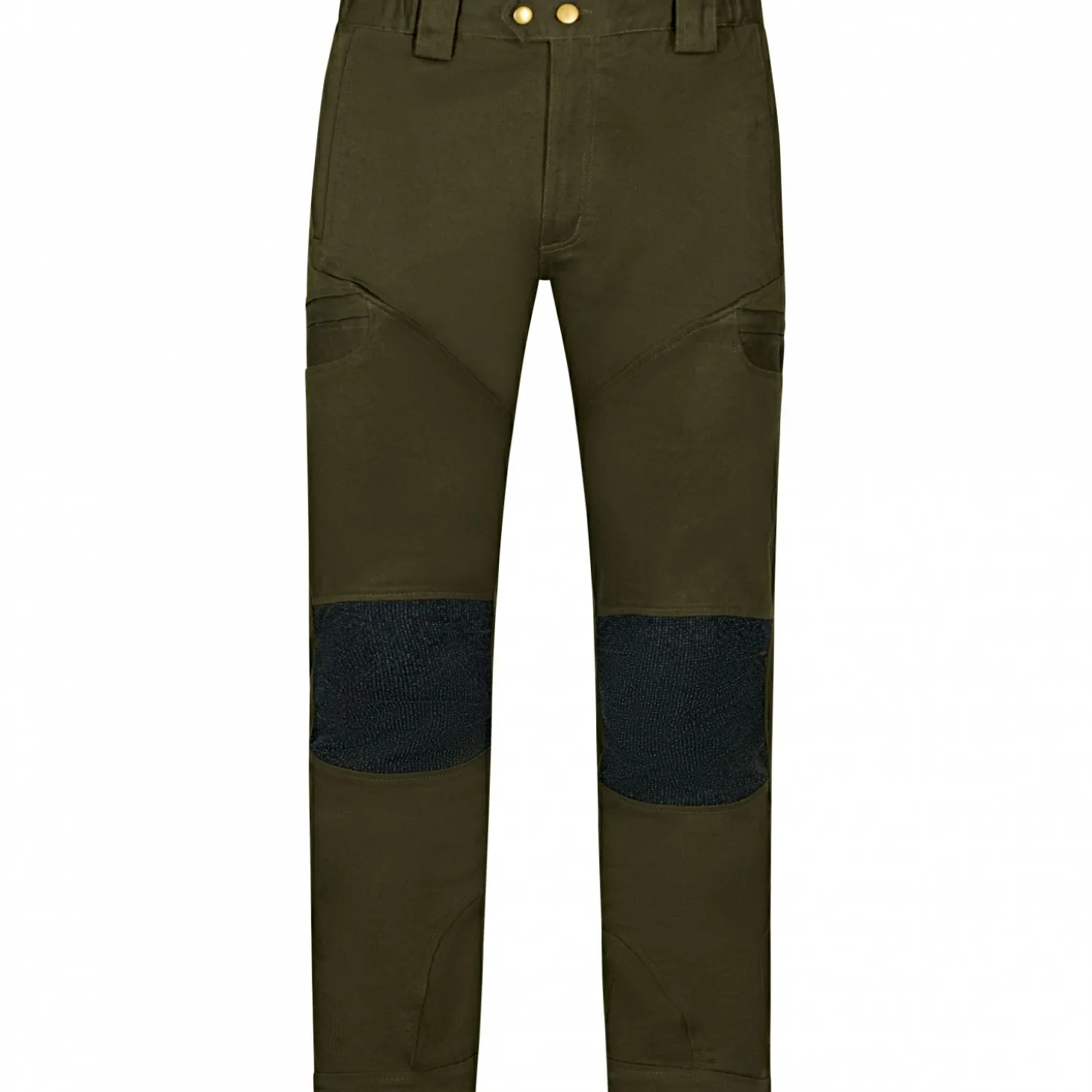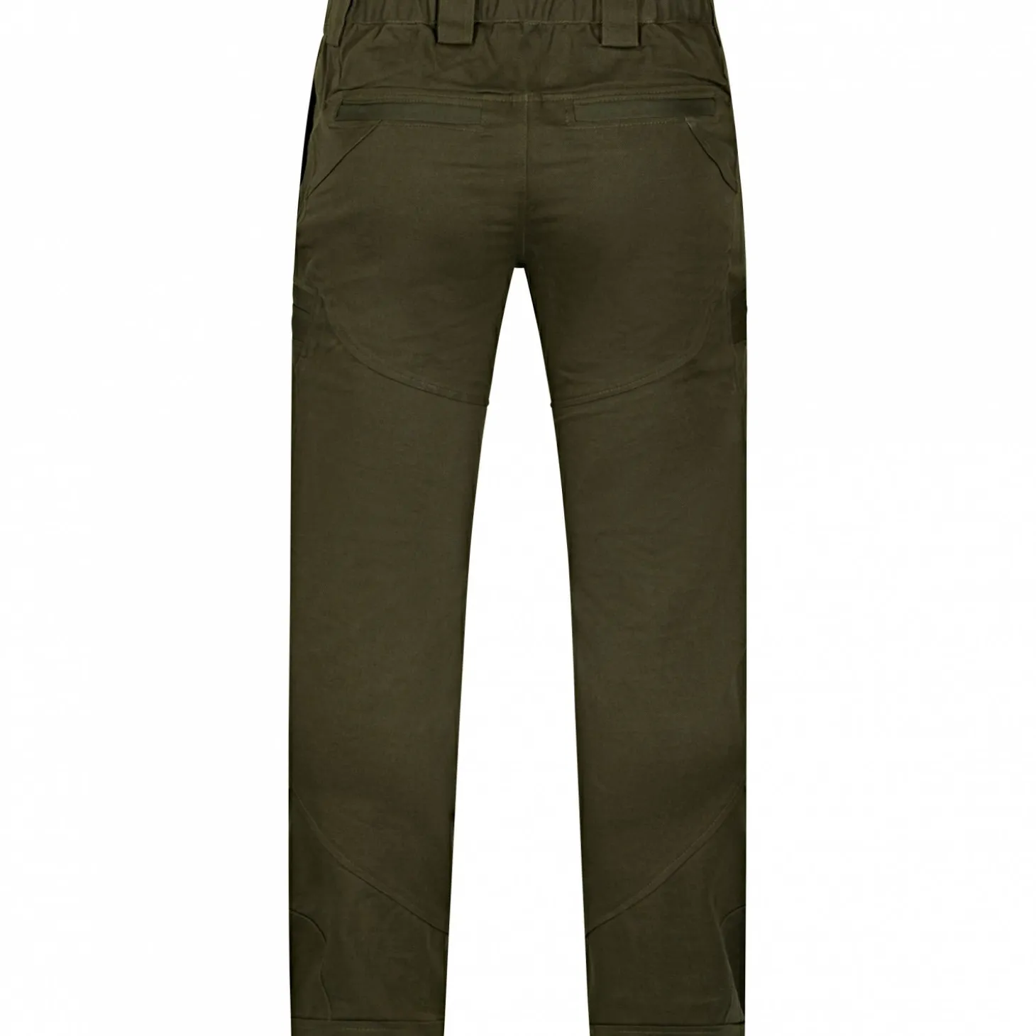 Diese Jagdhose in klassischem Oliv vereint Funktionalität, Robustheit und hohen Tragekomfort. Dank der extra robusten Einsätze im Kniebereich ist sie ideal für anspruchsvolle Einsätze im Revier geeignet. Der elastische Bund sorgt für eine bequeme Passform und optimale Bewegungsfreiheit. Ausgestattet mit einem breiten Gürtelband mit Knöpfen sowie insgesamt sechs Reißverschlusstaschen, vier vorne und zwei auf der Rückseite, bietet die Hose ausreichend Stauraum für Ausrüstung und persönliche Gegenstände. Ziernähte auf Vorder- und Rückseite runden das funktionale Design optisch ab. Farbe: oliv.