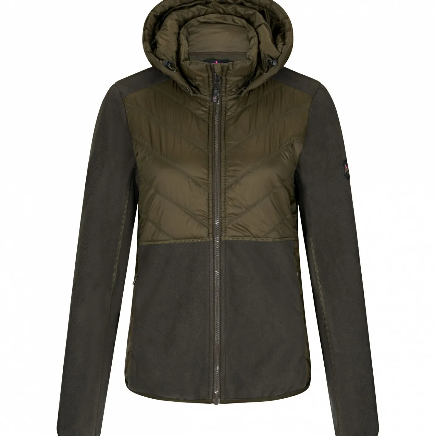 - Wärmendes Polyester-Fleece mit Softshell-Einsatz