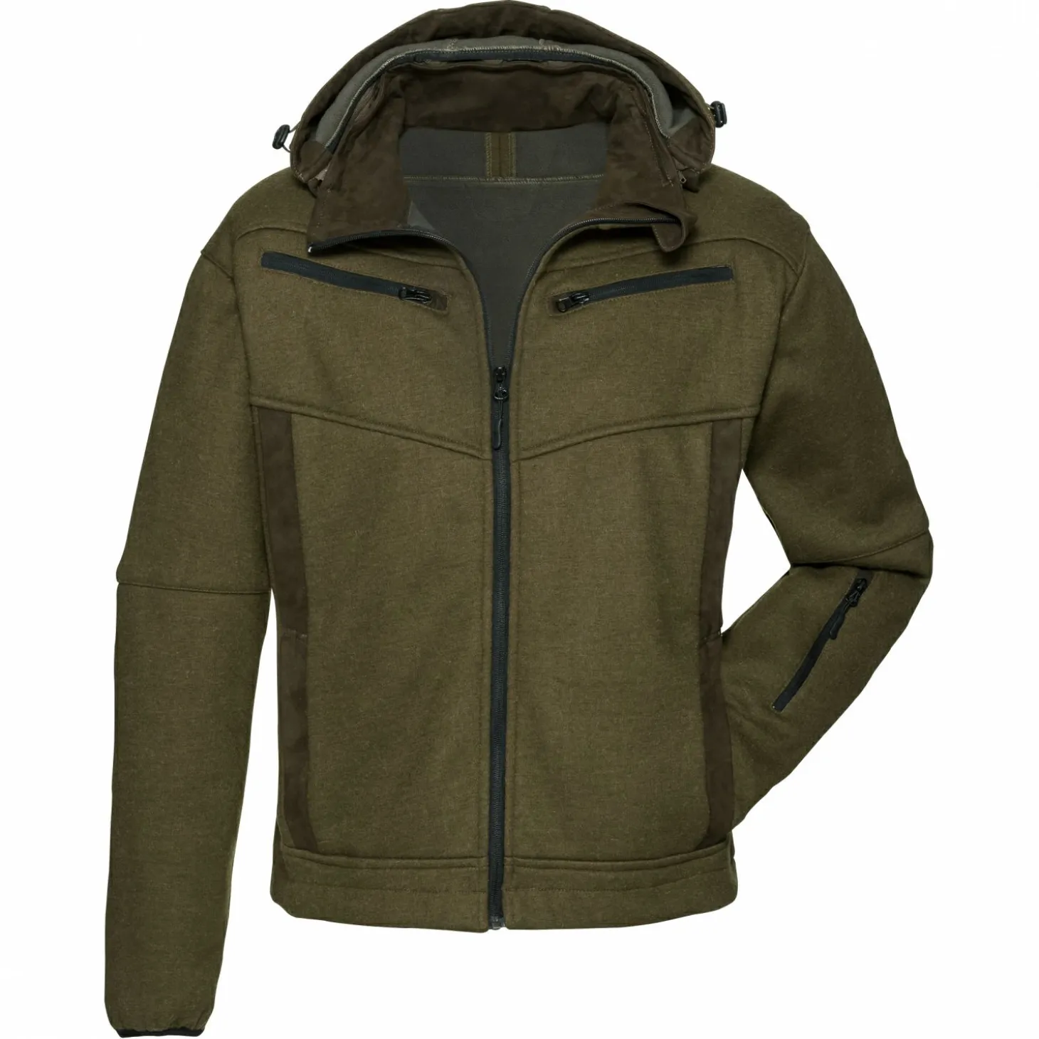 Für viel Stauraum und praktische Organisation sorgen vier Seitentaschen und zwei Brusttaschen, die ausreichend Platz für wichtige Utensilien bieten. Die abnehmbare Kapuze ermöglicht flexible Tragemöglichkeiten und schützt bei Bedarf zuverlässig vor Wind und Wetter. Die olivfarbene Jacke besticht durch ihren zeitlosen Look und lässt sich vielseitig kombinieren – ein perfekter Begleiter für Outdoor- und Jagdeinsätze. Farbe: oliv.