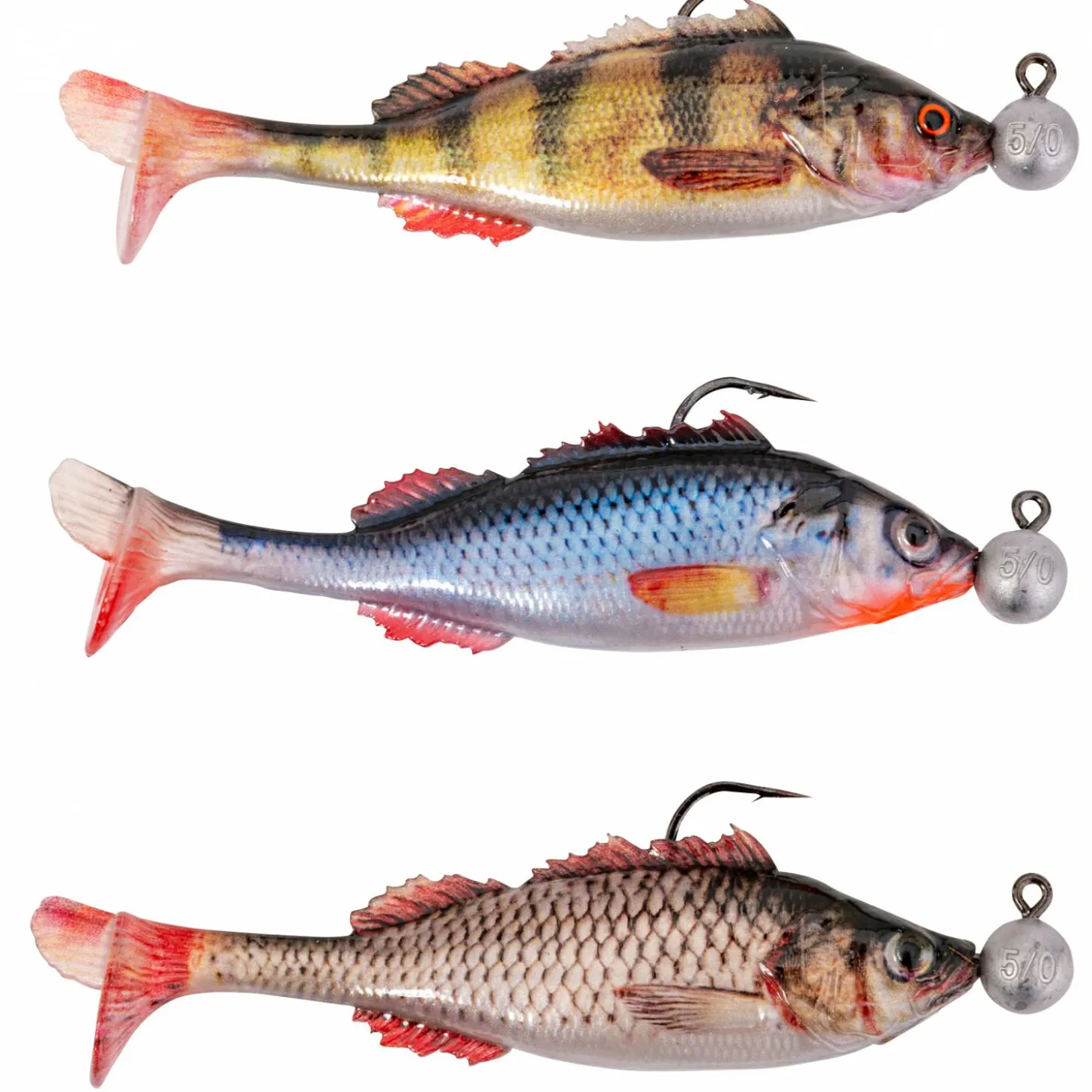Vorgebleite Gummifische. UV-aktiv. Inhalt: 3 Stück.