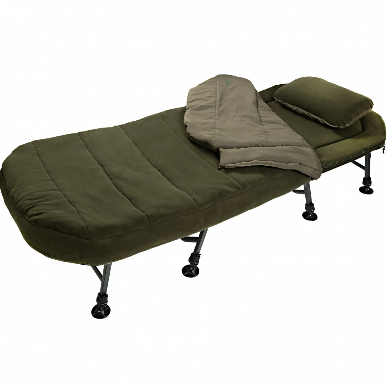 – Mattoliv lackiertes Liegengestell mit 8 Teleskop-Beinen und Schlammtellern