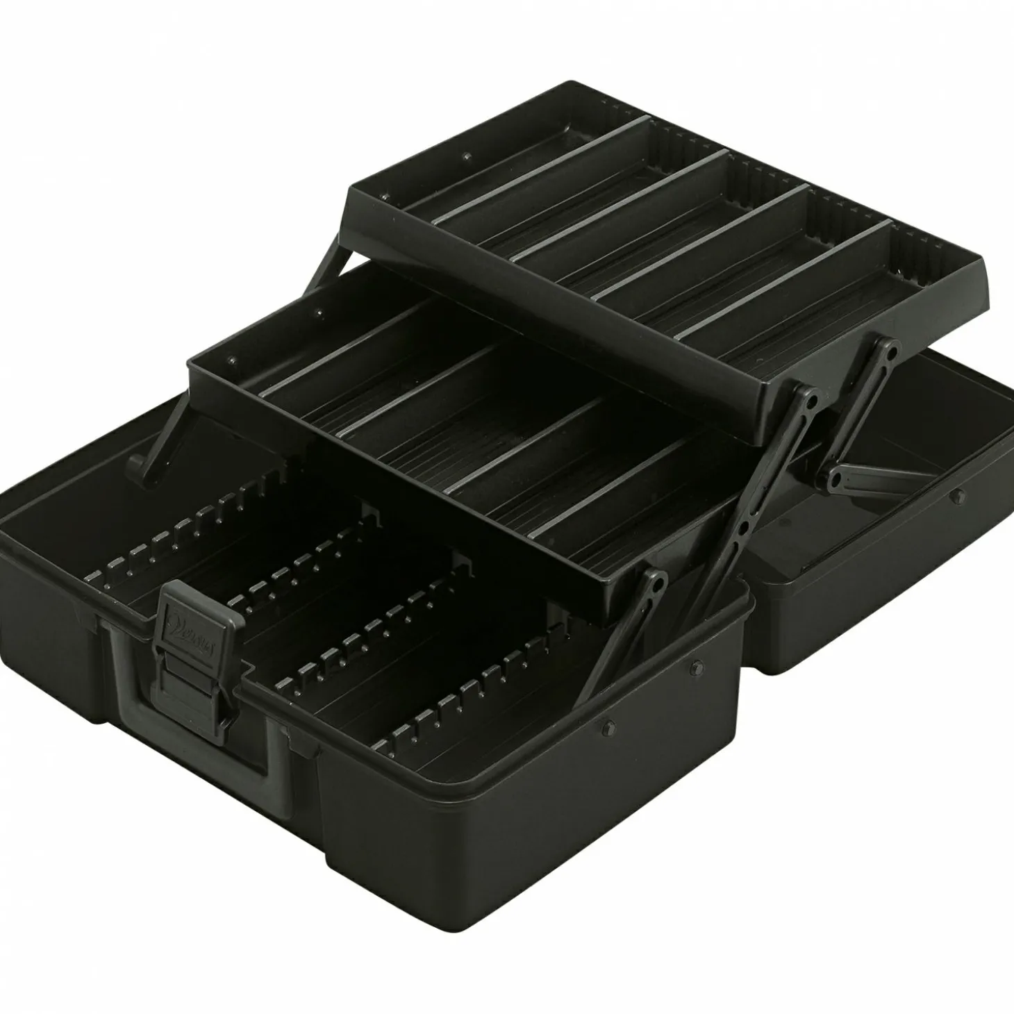 Hochwertiger, kompakter Angelkoffer mit flexibel einteilbaren Innenfächern. Durch das Ziehharmonika-System entstehen drei Etagen für kleines bis mittelgroßes Zubehör. Im Hauptfach bietet eine „Spinnerbar“ Platz zum übersichtlichen Aufhängen kleiner Kunstköder. Maße: 28,4 x 18 x 11,2 cm.