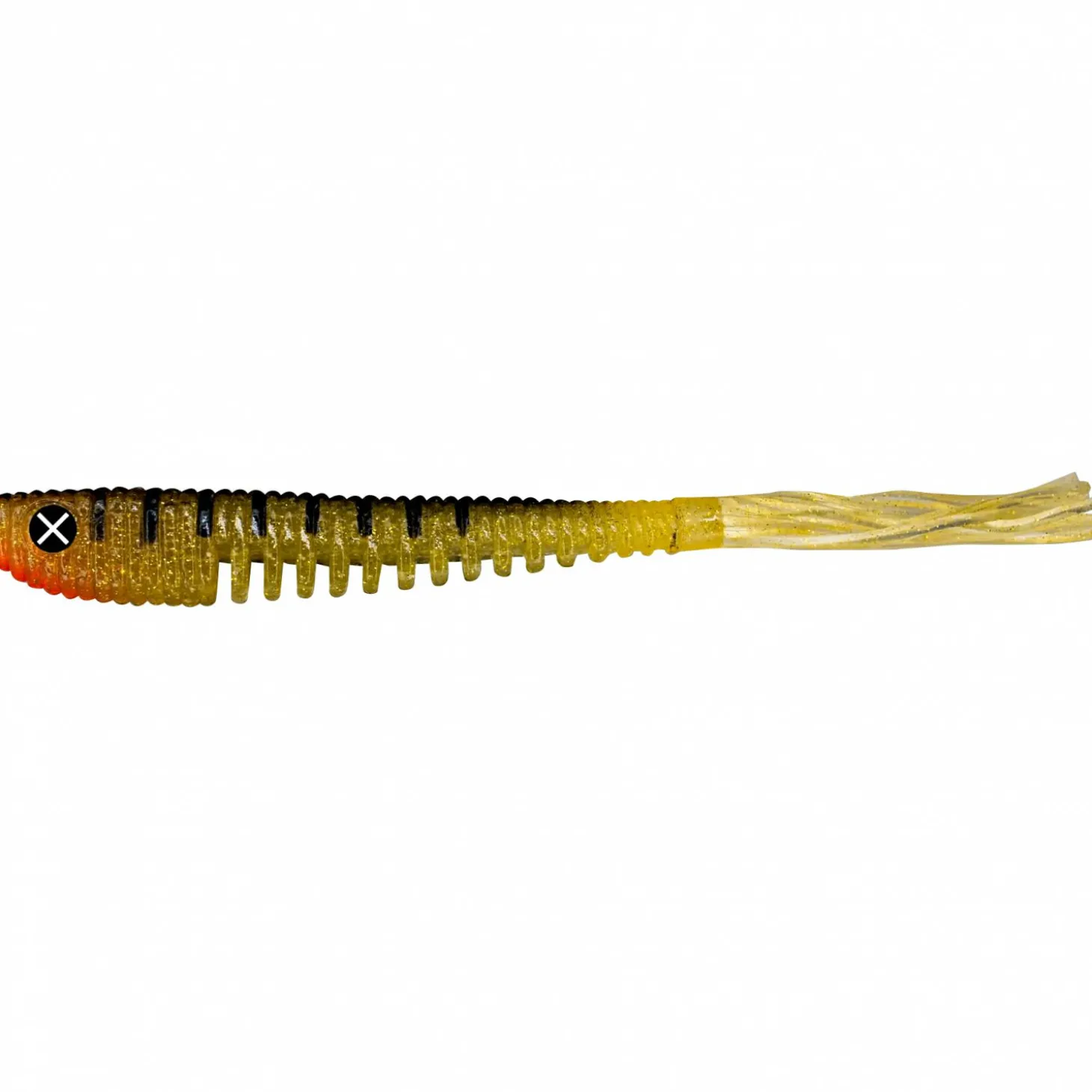 Softbait mit großen X-Augen als Agressionspunkt. Kerbeen und Aussparungen sorgen für mehr Beweglichkeit und Flexibilität.