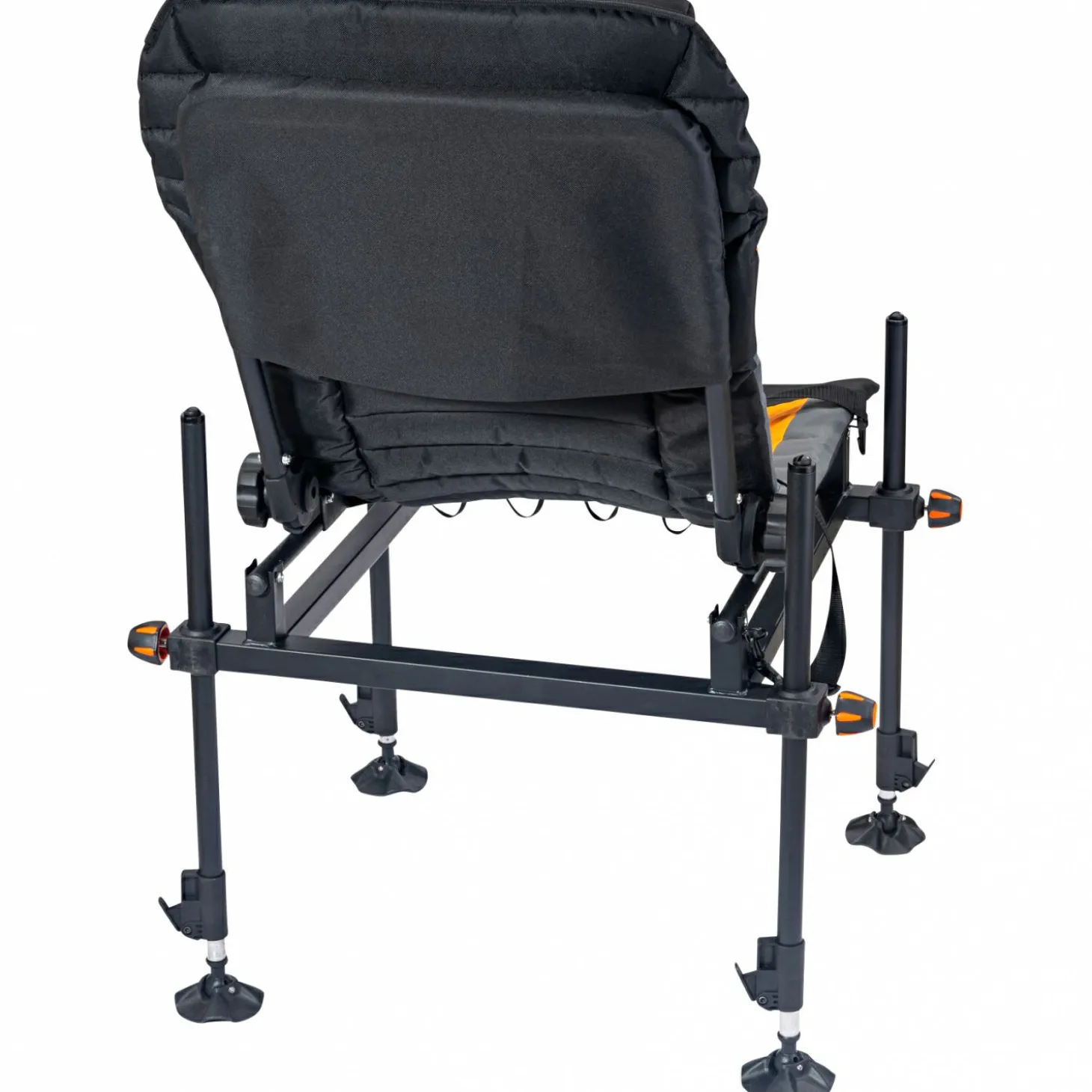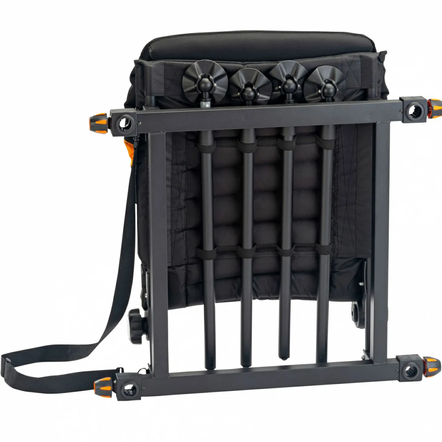 Für den Transport lassen sich die Beine platzsparend unter dem Sitz fixieren, während die klappbare Rückenlehne das Packmaß zusätzlich reduziert. Ein abnehmbarer Schultergurt erleichtert den Transport zum Angelplatz und macht den Feeder Chair trotz seiner Stabilität angenehm mobil.