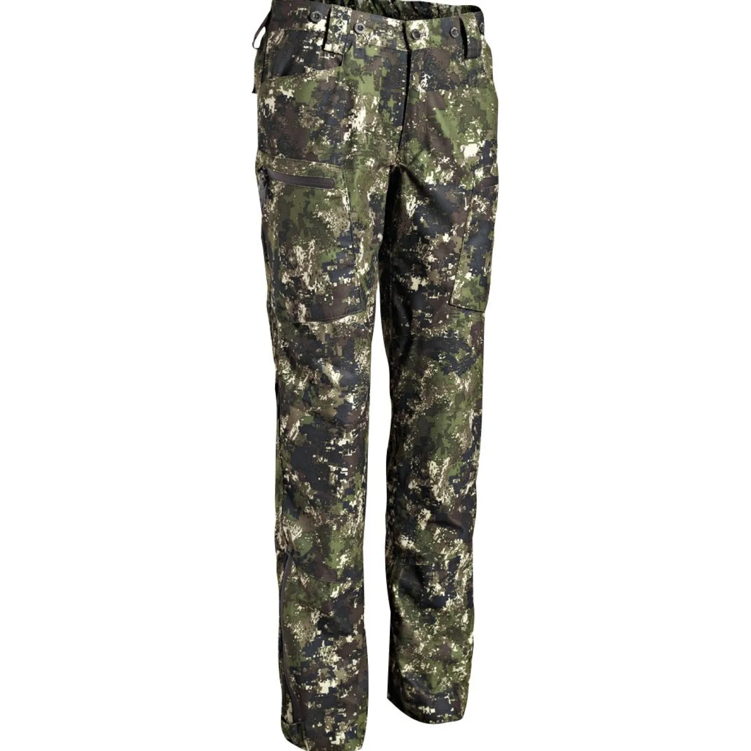 Aus einem außergewöhnlich geräuscharmen, wasser- und winddichten, leichten Gewebe für einen komfortablen Sitz. Der lizenzierte Tecl-Wood-Tarndruck wurde speziell für nordische Wälder entwickelt, eignet sich aber auch ideal für die Ausflüge ans Wasser. Mit geräumigen Taschen mit versiegelten Reißverschlüssen, D-Ring und Reißverschluss an den Fußenden für ein leichteres An- und Ausziehen. Farbe: Tecl-Wood tarn.