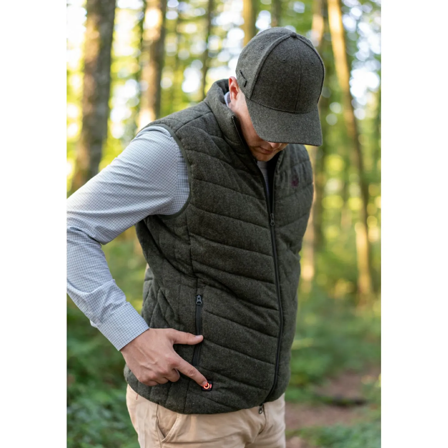 Diese leicht abgesteppte Heizweste aus feinem Merinoschurloden vereint traditionelles Handwerk mit modernster Technologie. Merinoloden ist von Natur aus temperaturausgleichend, antibakteriell und nahezu selbst reinigend. Er schützt zuverlässig vor Wind und Wetter, ist schmutz- sowie wasserabweisend und äußerst scheuerfest. Für kalte Tage verfügt die Weste über eine integrierte Heizfunktion, die sich ganz einfach per Knopfdruck aktivieren lässt. Drei wählbare Temperaturstufen sorgen für wohltuende Wärme, die über eine LED-Anzeige sichtbar gemacht wird. Wer auf Diskretion Wert legt, kann die Anzeige im sogenannten Ghost-Modus deaktivieren – ideal für dunkle Umgebungen, in denen kein Licht stören soll. Die abgesteppten Zonen an Vorder- und Rückseite sorgen nicht nur für ein modernes Erscheinungsbild, sondern bieten zusätzlich ein hervorragendes Isolationsvermögen. Ein elastischer Gummizug unterstützt die sehr gute Passform. Farbe: Olive.
