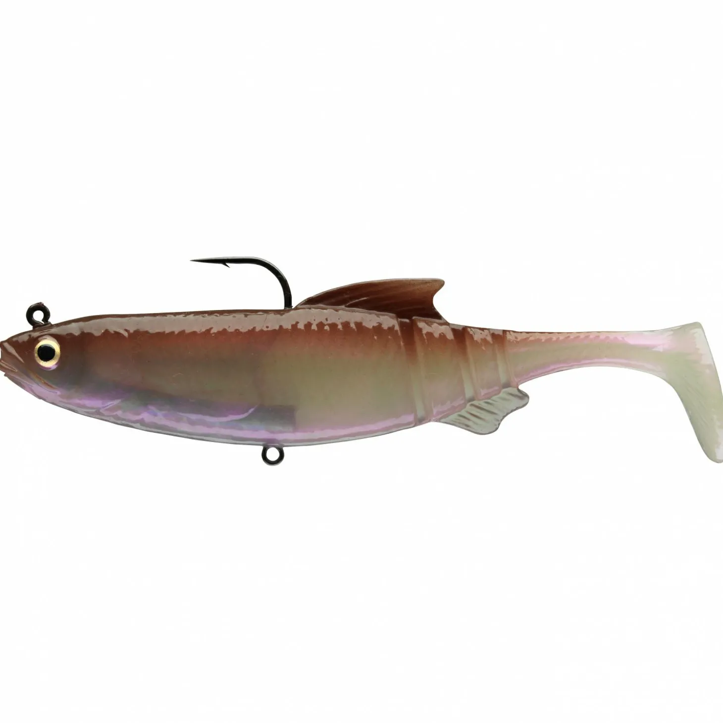 Diese kompakten, sofort einsatzbereiten Swimbaits laufen bereits bei leichtem Zug sauber an und entwickeln eine unregelmäßige, reizvolle Aktion, die Räuber schnell zum Biss animiert. Dank des relativ leichten Balancegewichts im Inneren eignen sie sich hervorragend für eine langsame Führung sowie für den Einsatz im flachen Wasser.Der Köder kann klassisch als Swimbait gleichmäßig eingekurbelt oder wie ein Gummifisch gejiggt werden. In der Absinkphase trudelt er mit deutlichen Schwanzausschlägen und flankender Bewegung Richtung Grund – ein starker Reiz für Zander und Hecht.Die 16-cm-Version ist mit einem Bauchdrilling ausgestattet. Die 12-cm-Version wird mit Einzelhaken geliefert und besitzt zusätzlich eine Öse am Bauch, um bei Bedarf einen Drilling zu montieren. Inhalt: 1 Stück.
