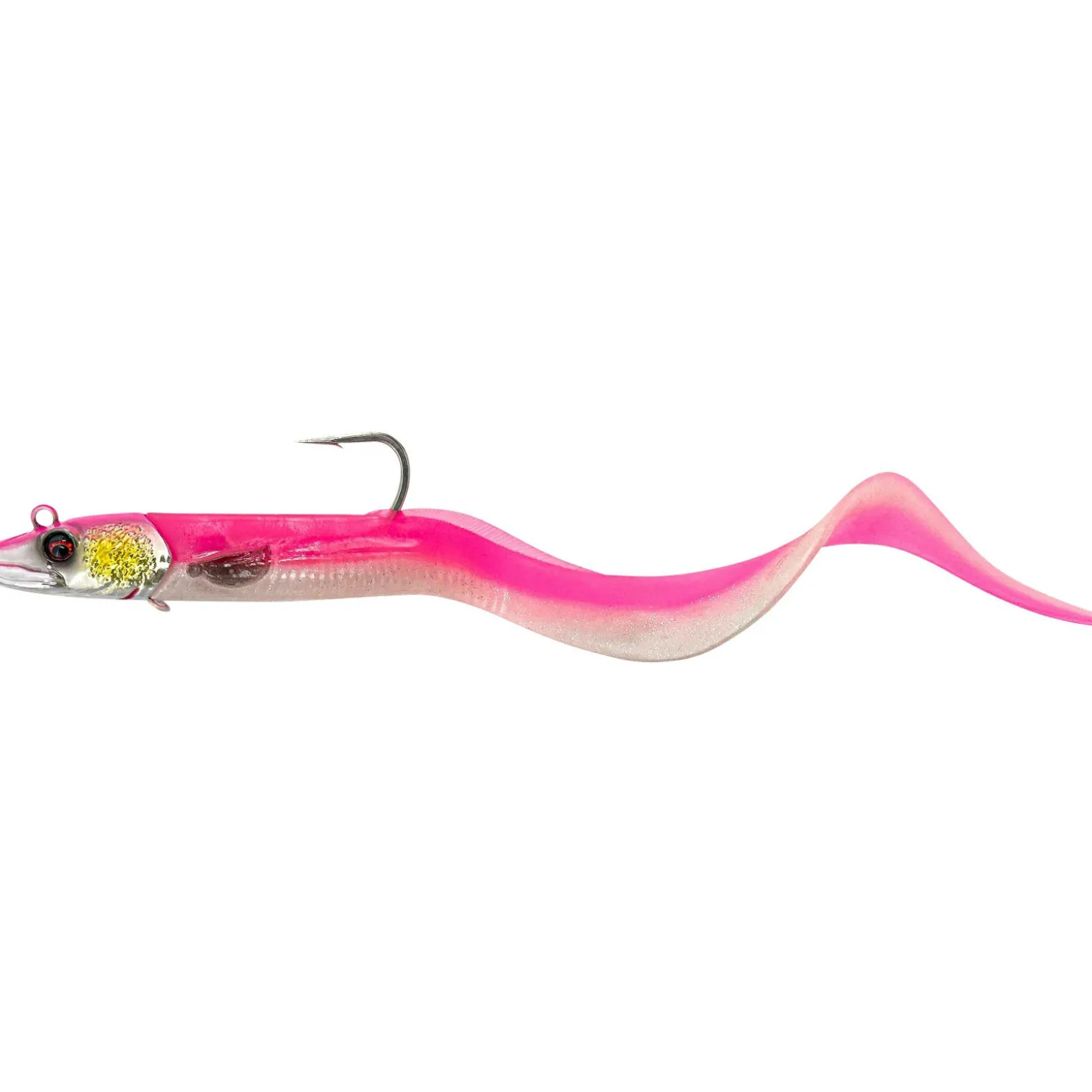 Echte Imitation eines Conger mit Tintenfisch-Duft und eingebauter Rassel im Jigkopf. Haken aus rostfreiem Stahl. Inhalt: 1 Stück.