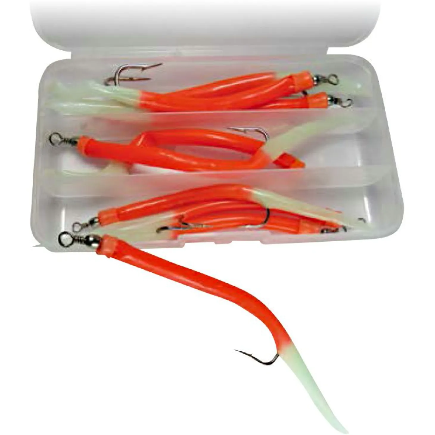 Die Gummi-Makks gibt es als Sortiment in einer Kunststoffbox. Inhalt: 9 Stk, 3 Stk. je Hakengröße.
