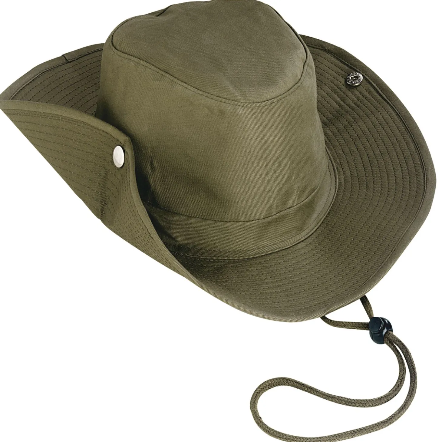 Mit Druckknopf zum Hochklappen der Krempe. Farbe: oliv.