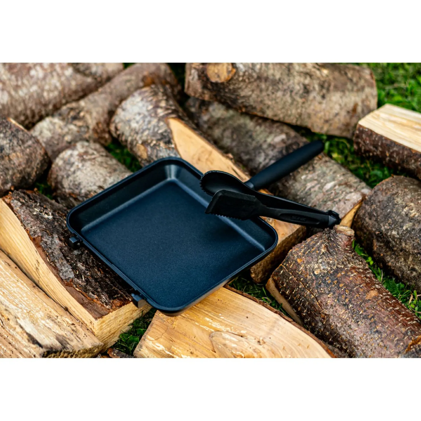 Die Sizzla Multi-Pan von Sonik ist eine praktische und besonders leichte Pfanne aus Aluminium per Druckguss-Verfahren hergestellt. Sie zeichnet sich aber auch über Ihre Kompaktheit aus, denn der Griff der Pfanne ist abnehmbar, wodurch Sie einiges an Platz in Ihrem Gepäck sparen. Eine weitere Besonderheit der Multi-Pan sind die D-Scharniere an der Rückseite, womit mehrere Pfannen zusammengefügt werden können. Zu guter Letzt gehören auch noch Multifunktions-Zangen mit zu der Pfanne dazu, damit Sie rundum startklar sind, sich auch unterwegs und in der Natur etwas Warmes zu kochen.