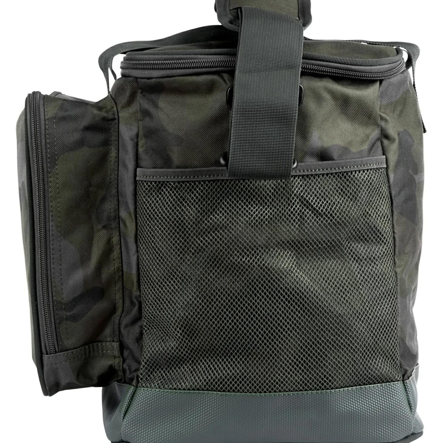 Sowohl für lange als auch für kurze Angelsitzungen kriegen Sie in dieser praktischen Bait & Tackle Tasche all Ihre Köder und dergleichen unter, die Sie benötigen. Hergestellt wird diese Tasche aus HD 600D Bank-Tek Tarnmaterial und bietet nochmal extra Platz durch die Reißverschlusstasche an der Vorderseite und die beiden seitlichen Netztaschen. Boden ist wasserdicht und den Schultergurt können Sie problemlos abnehmen.