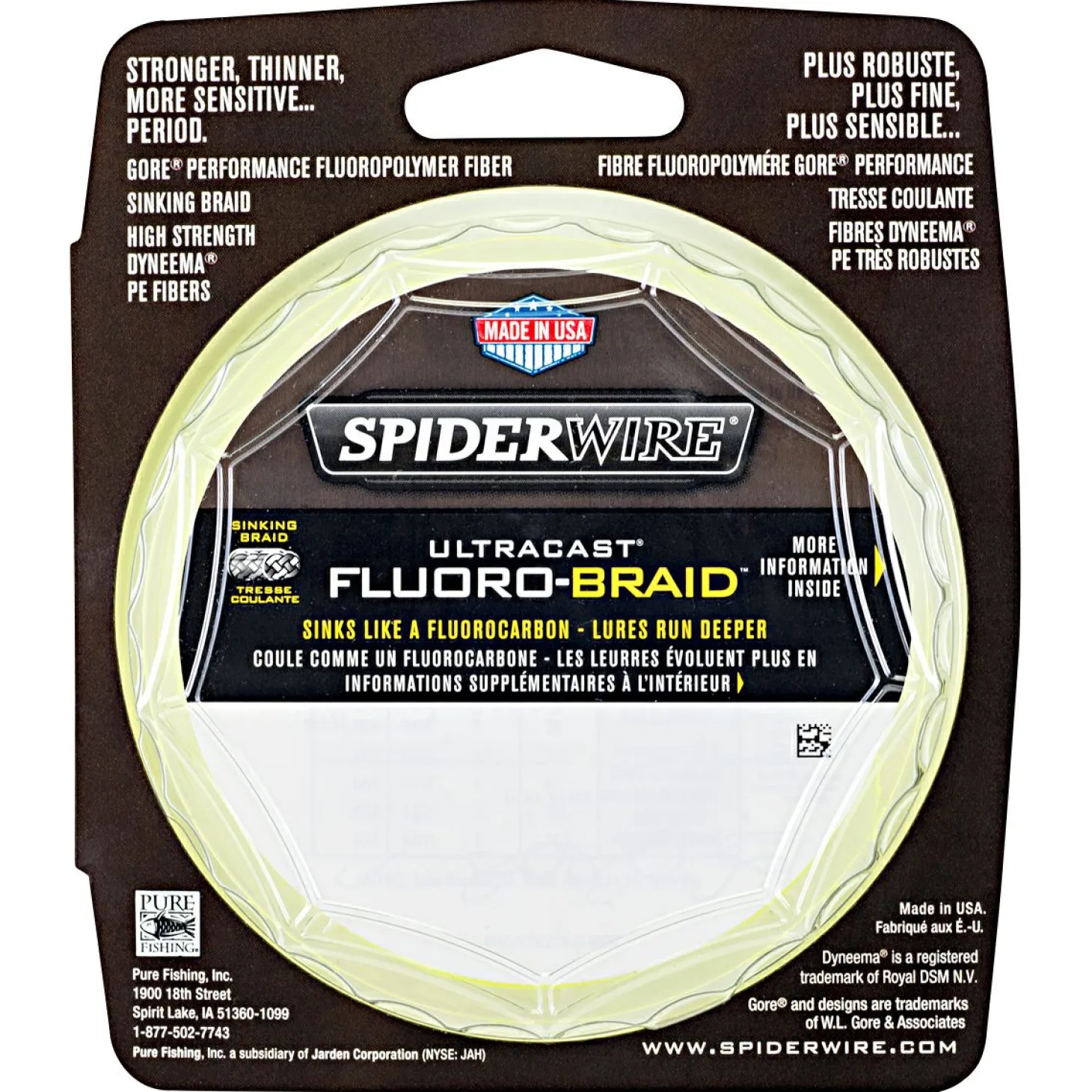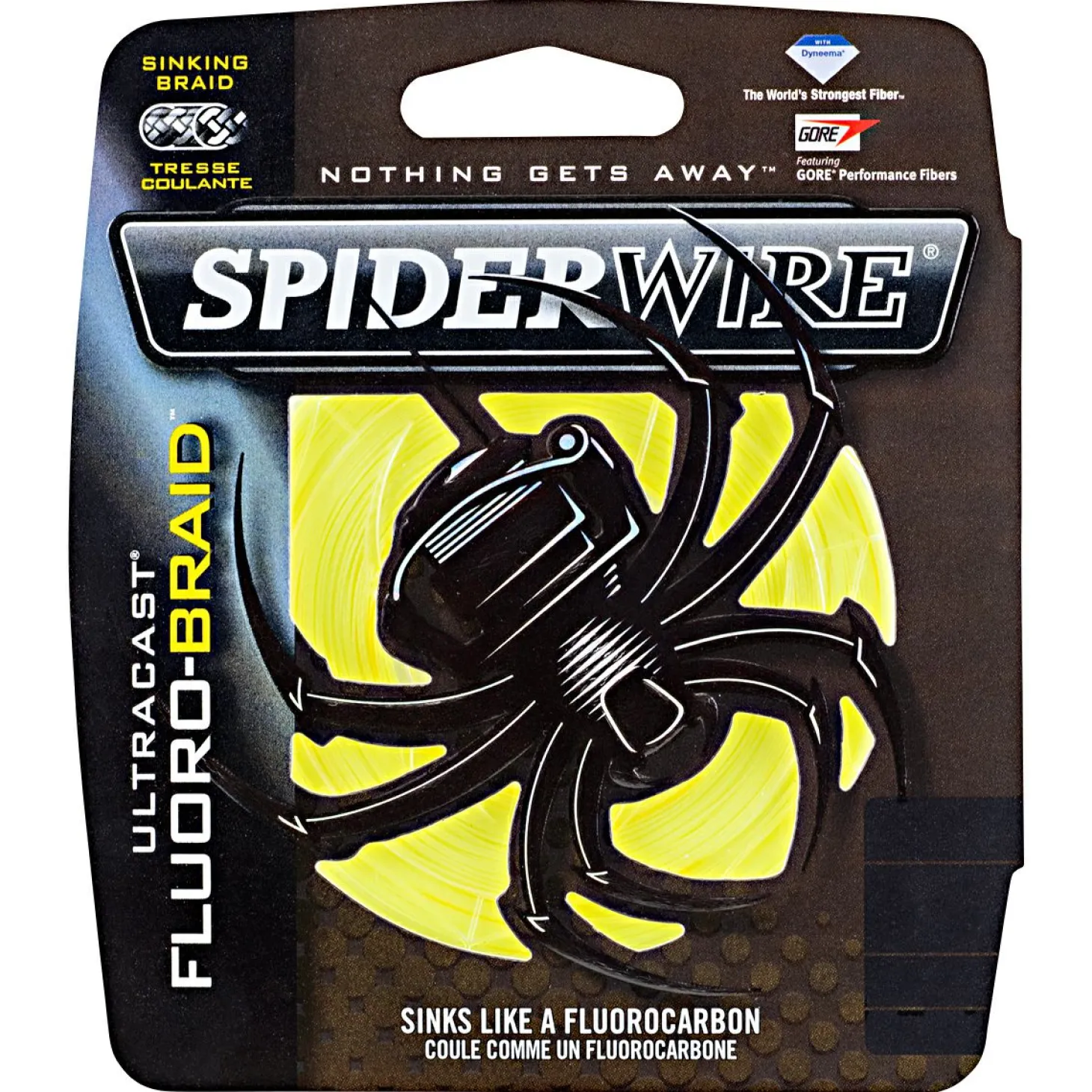 Geflechtschnur aus Gore-Performance-Fasern und PE-Fasern mit den positiven Eigenschaften einer geflochtenen Schnur und dem Sinkverhalten einer Fluorobraid-Schnur. Farbe: gelb.