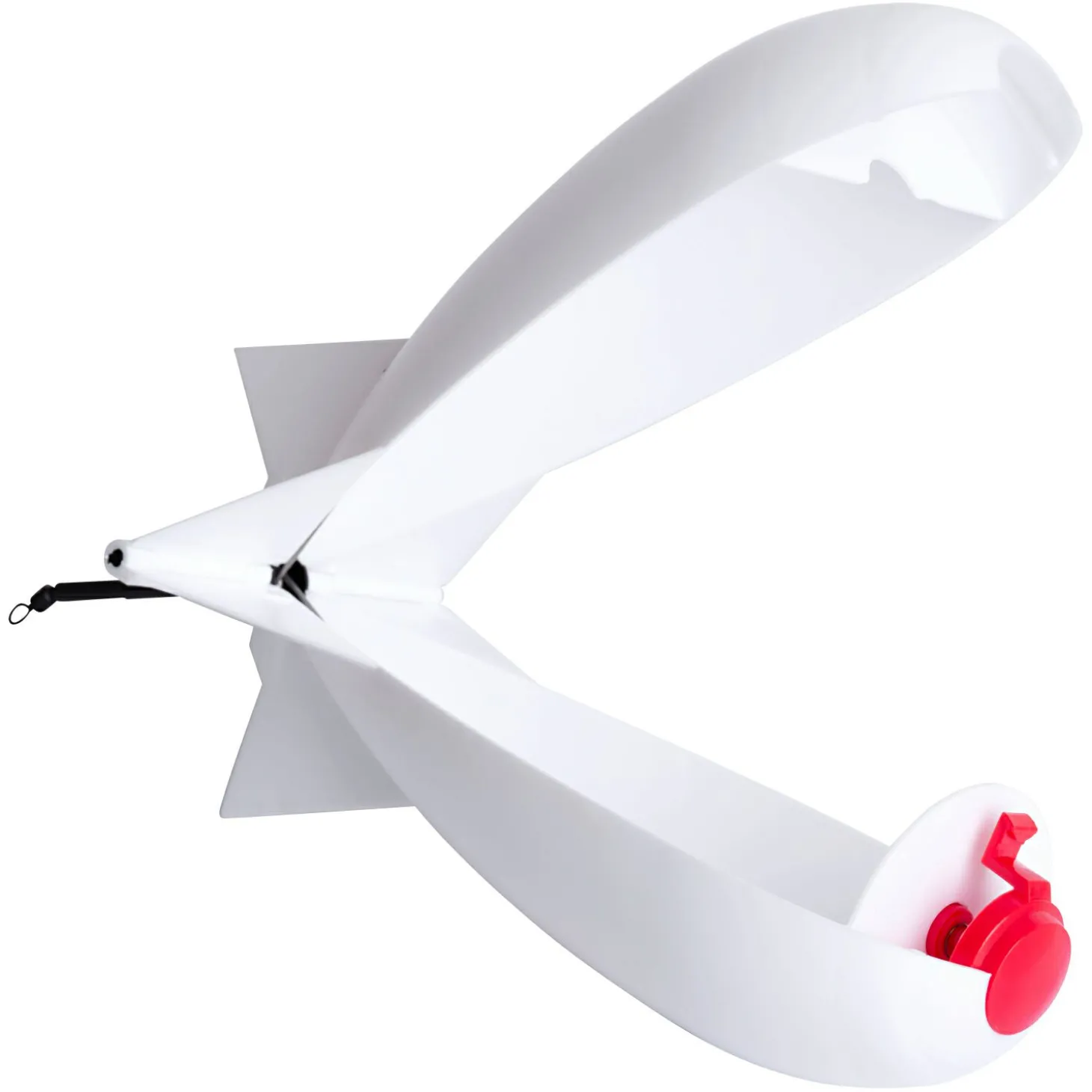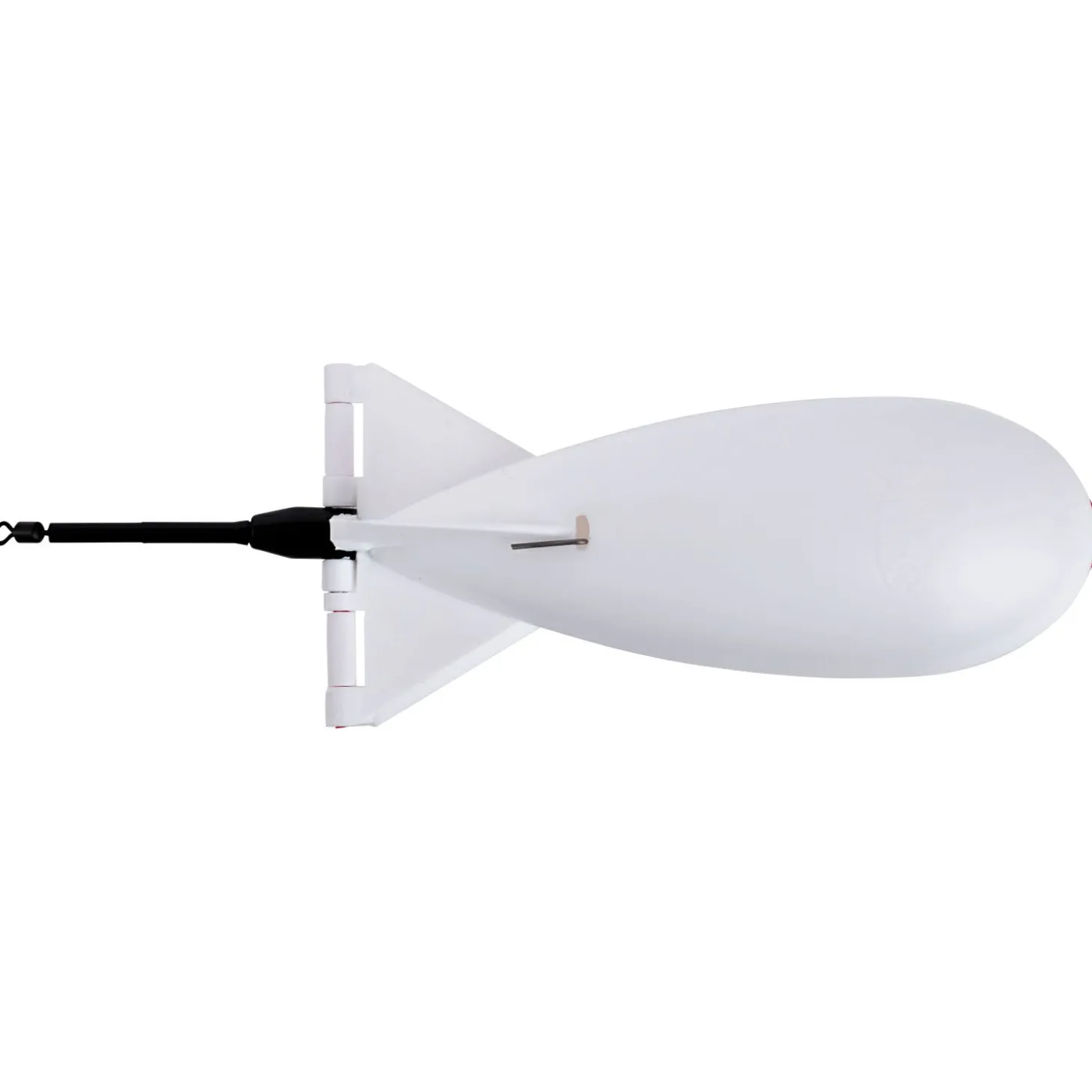 Futterrakete mit großem Fassungsvermögen, die Boilies, Pellets, Partikel oder kleinere Futterballen präzise und sicher zum Futterplatz bringt. Durch den innovativen Druckknopf-Mechanismus öffnet sich die „Bombe“ erst beim Auftreffen auf die Wasseroberfläche.