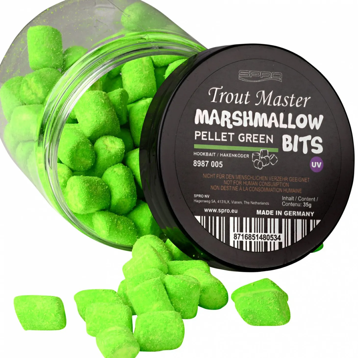 Die Trout Master Marshmallow Bits heben das klassische Marshmallow-Konzept am Forellensee auf ein neues Level. Mit acht auffälligen Farbvarianten und fünf intensiv abgestimmten Aromen sind sie gezielt auf die Wahrnehmung und Fressreize von Forellen ausgelegt und sorgen für hohe Sichtbarkeit sowie starke Lockwirkung unter Wasser.